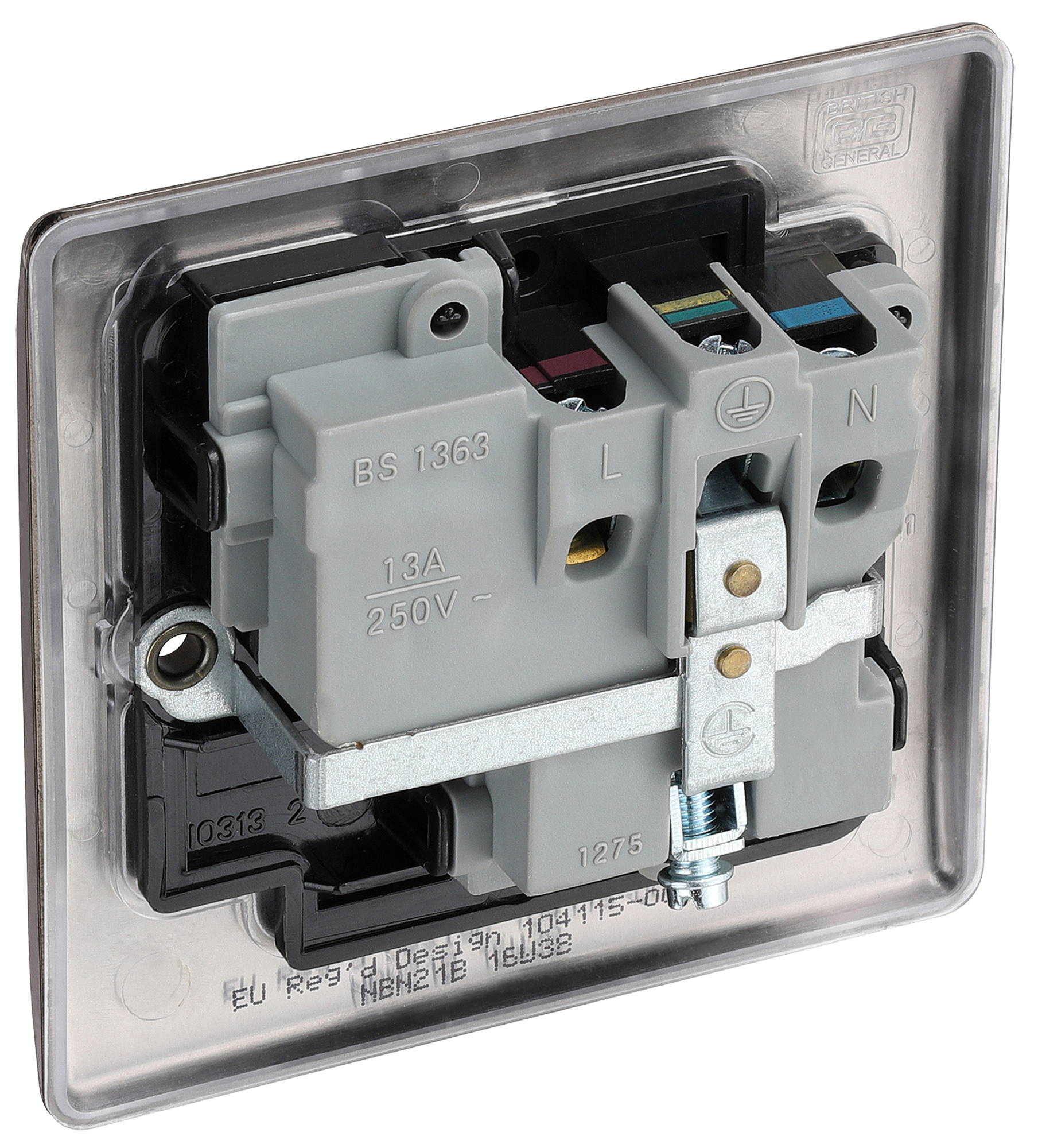 BG Nexus Metal Black Nickel 13A Single Socket NBN21B