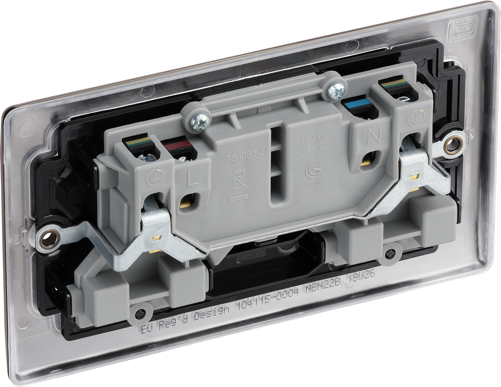 BG Nexus Metal Black Nickel 13A Double Socket NBN22B