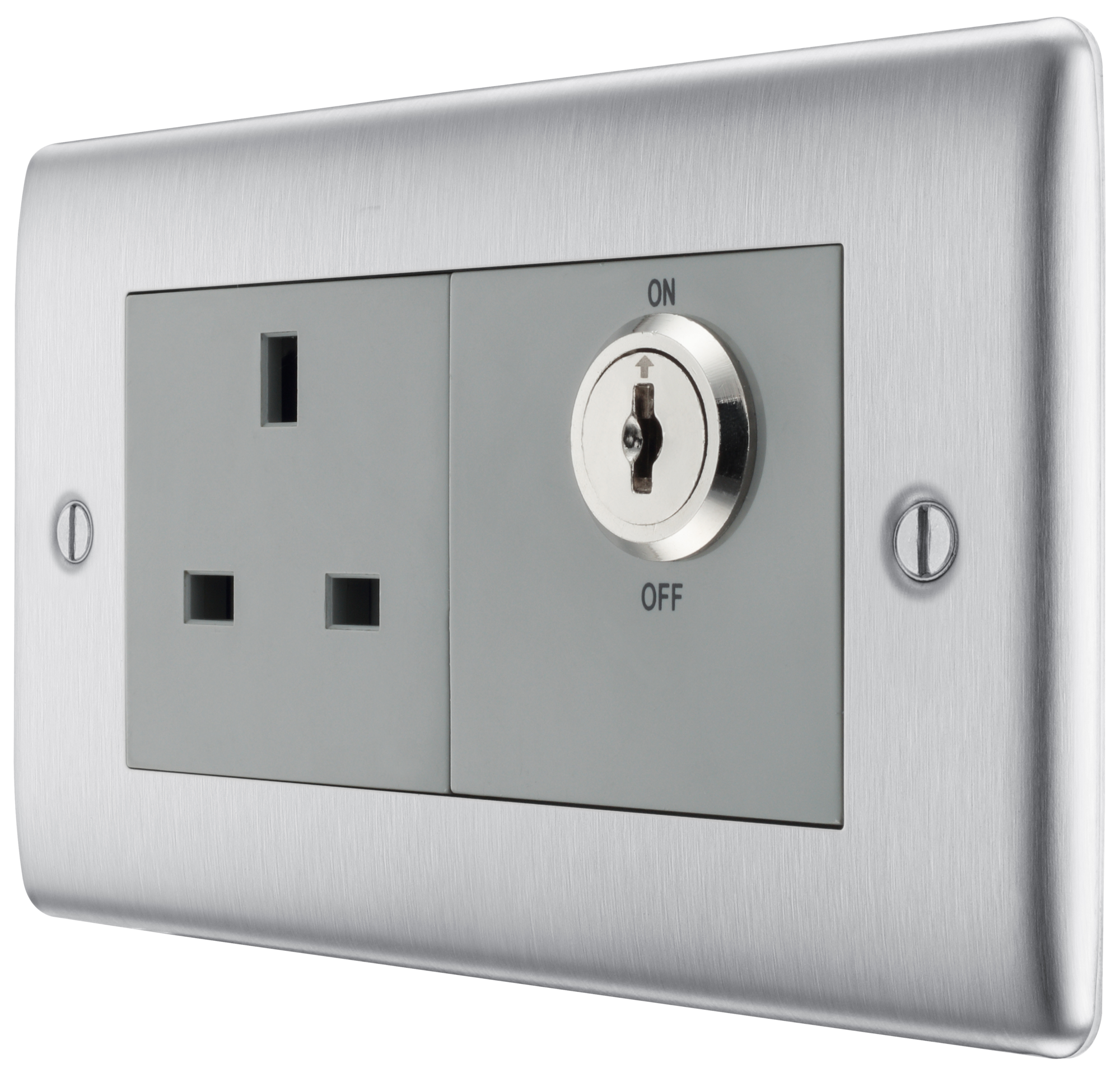 BG Nexus Brushed Steel 13 Amp Double Pole Key Controlled Socket NBSKYSWSG
