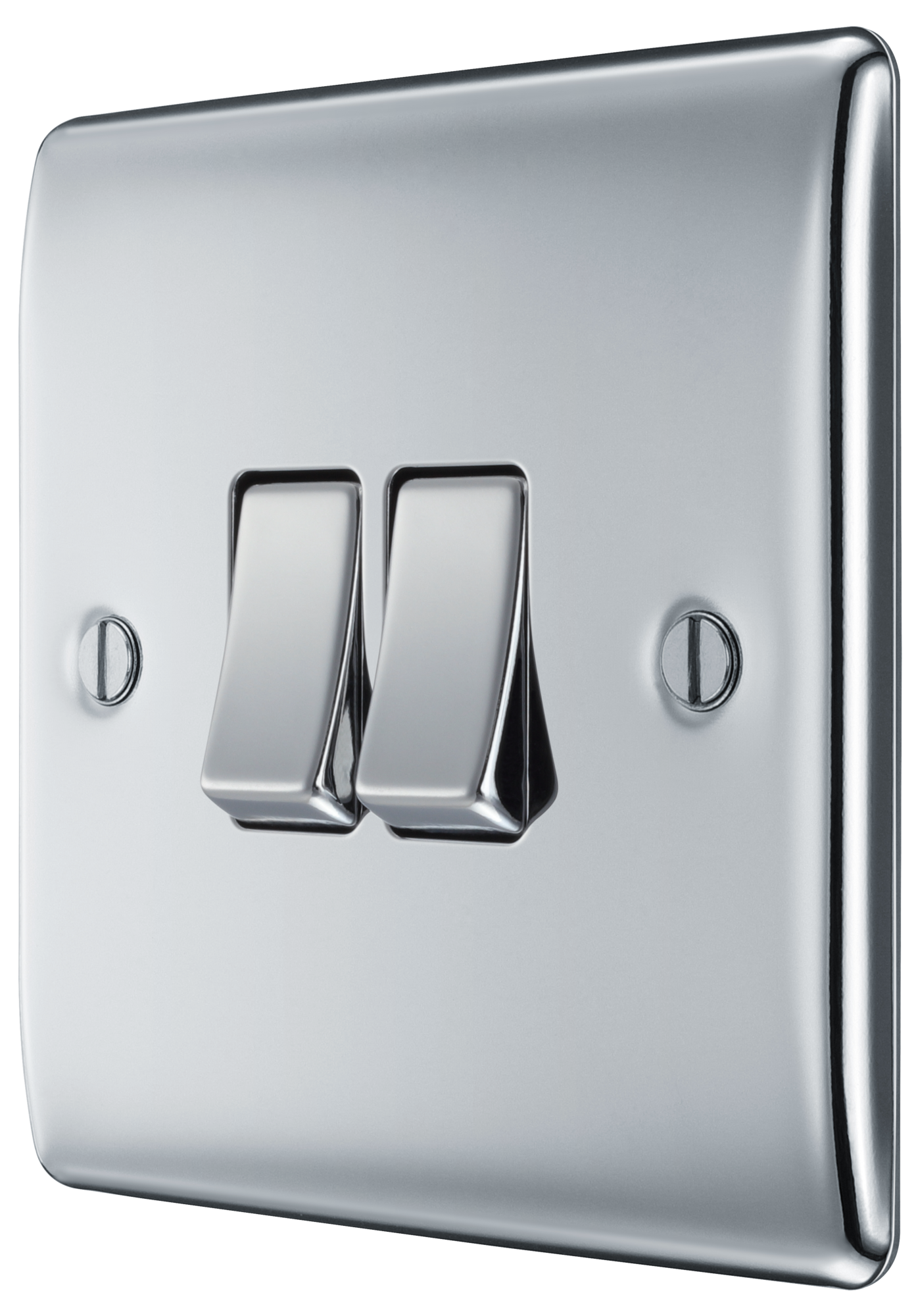 BG Nexus Metal Polished Chrome Light Switch 2 Gang 2Way NPC42
