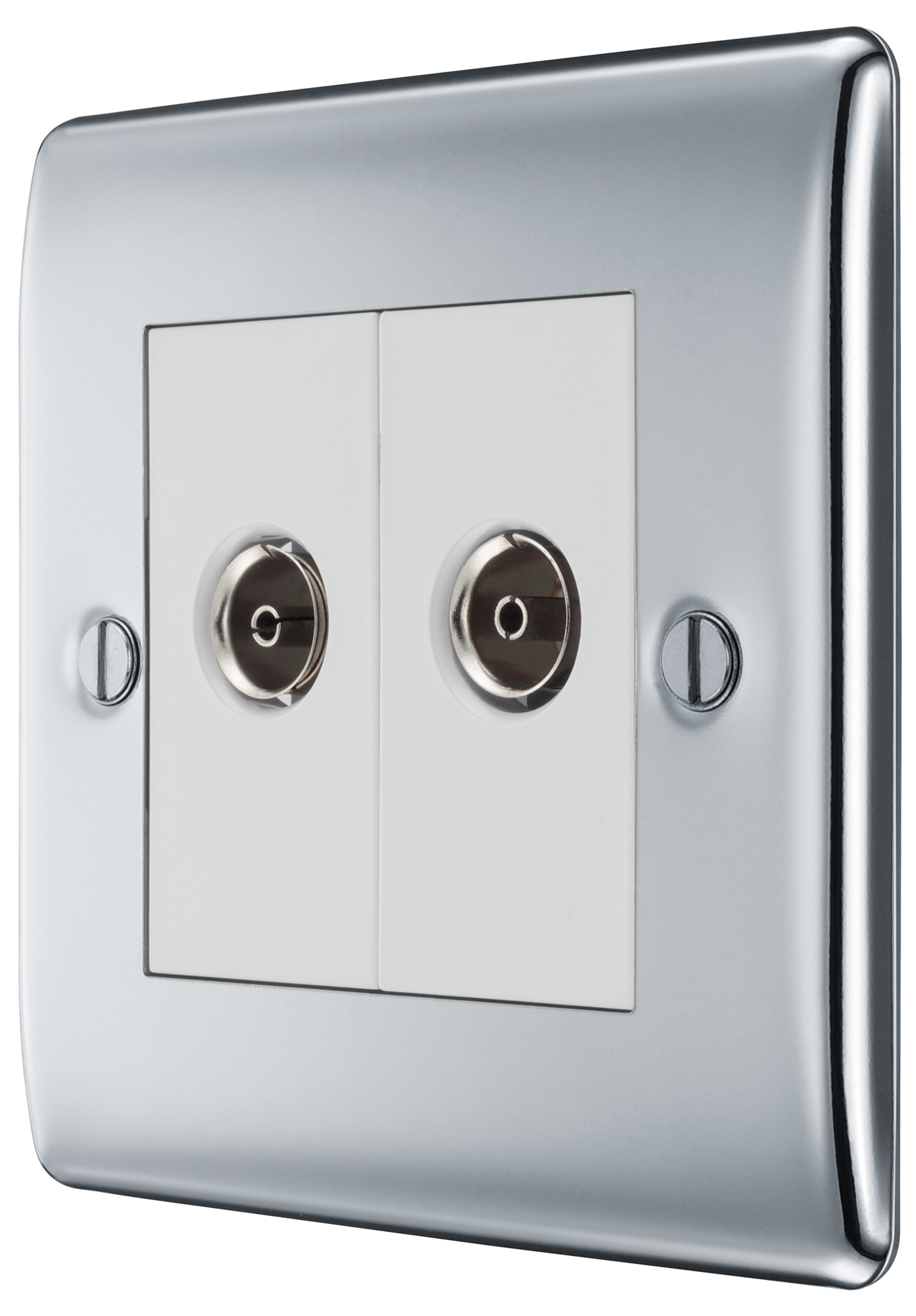 BG Nexus Metal Polished Chrome Double Co-axial Socket NPC61