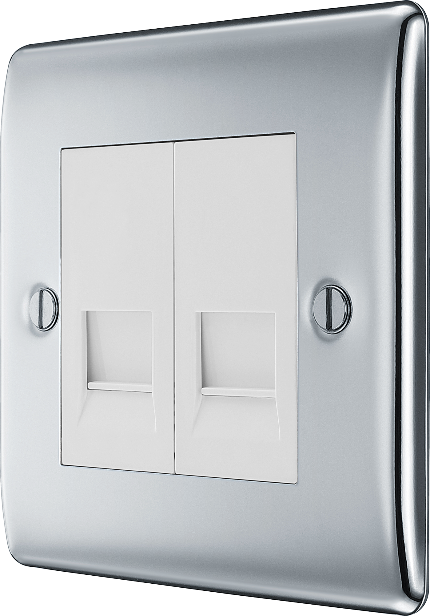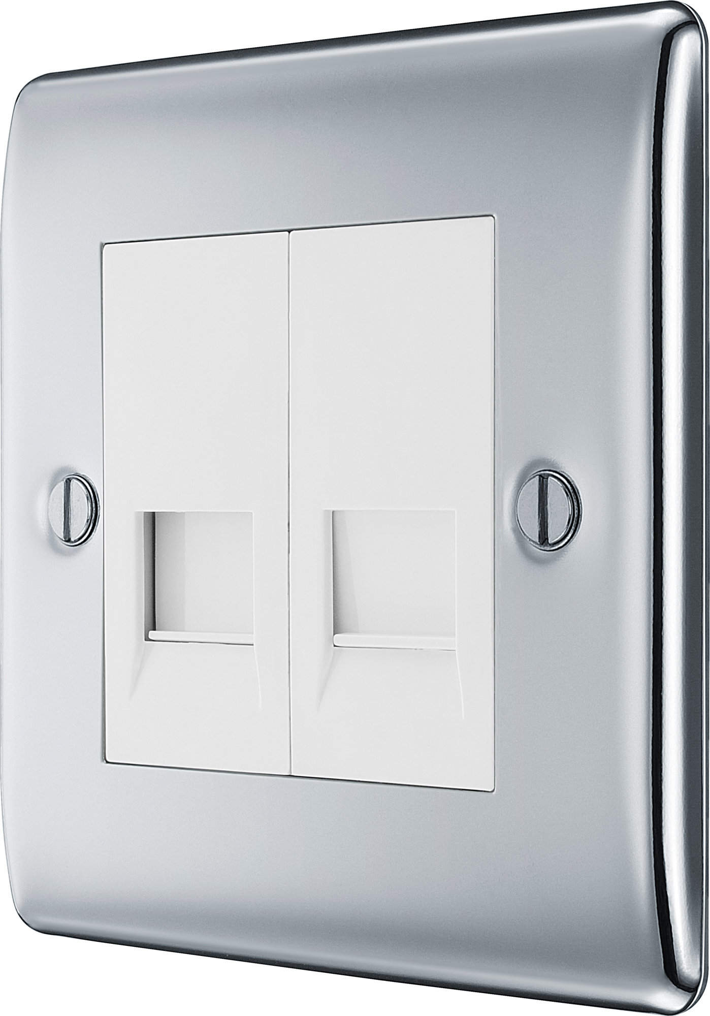 BG Nexus Metal Polished Chrome Double Cat5E Data Outlet NPCRJ452W