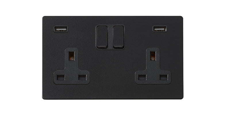 Hamilton Hartland G2 Matt Black DP SS2+USB+USB C 2.4A Switched Socket BL/BL 7G2MBSS2USBCBL-B