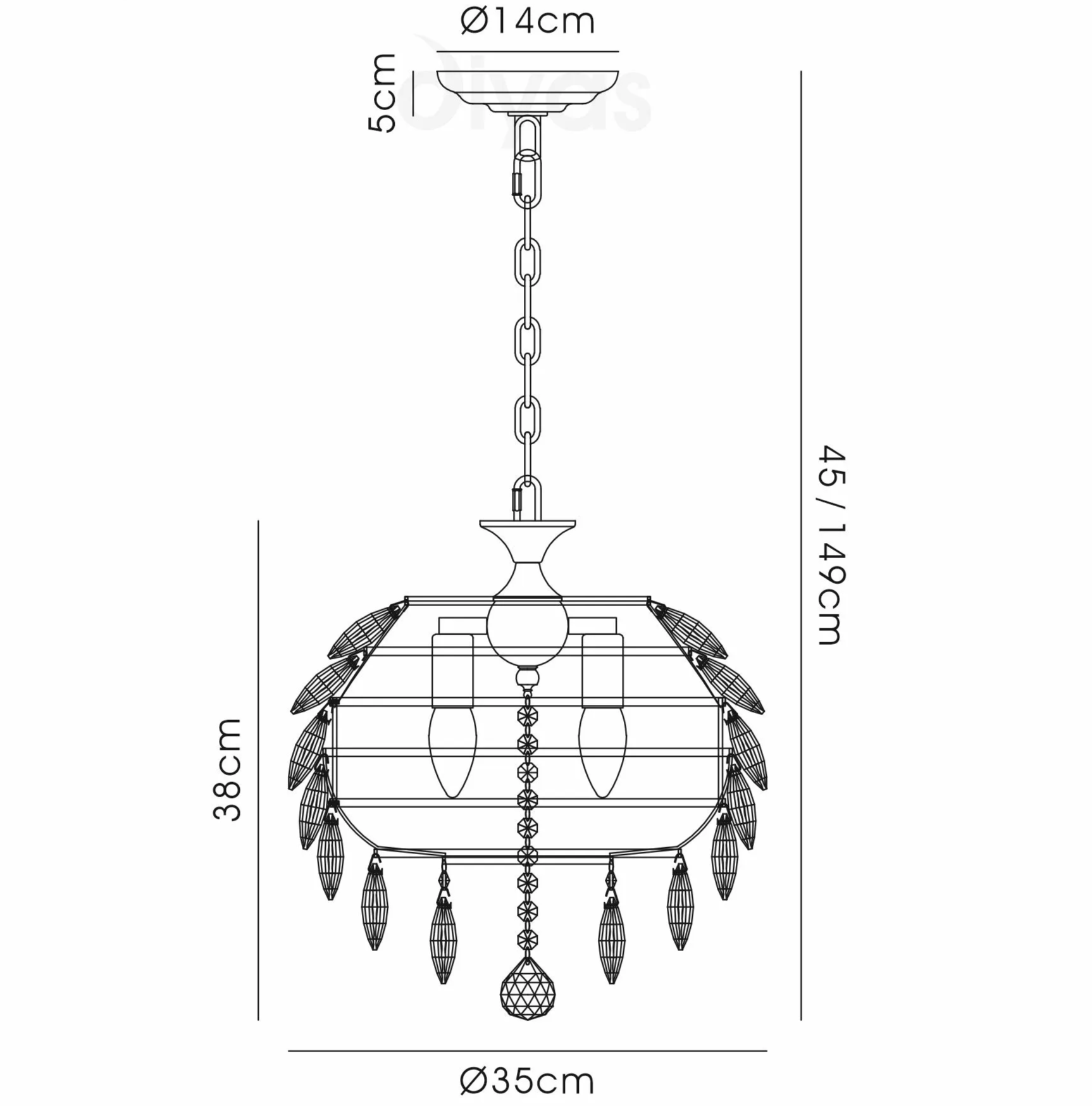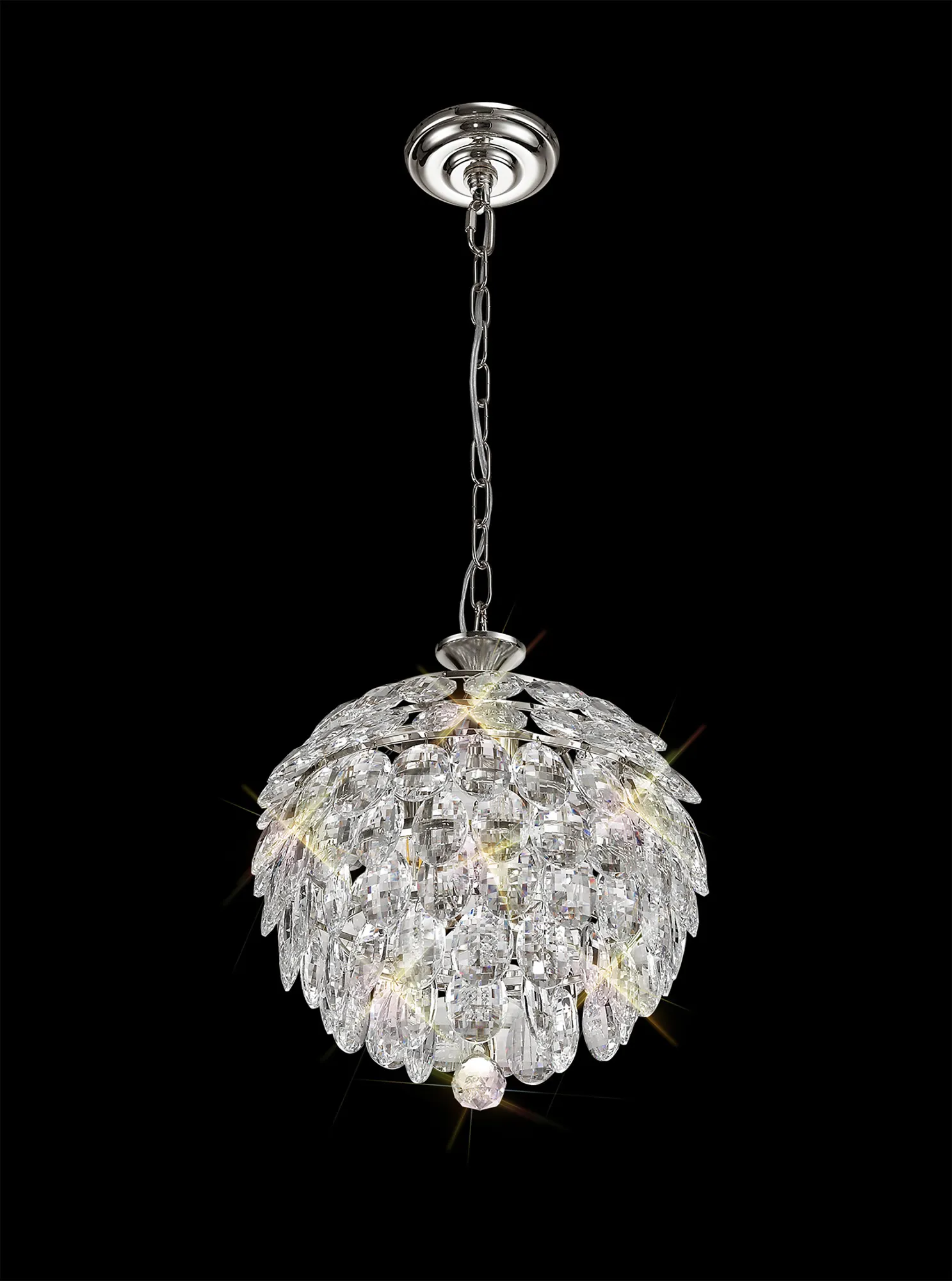 Lightologist Conifer 35cm Pendant, 3 Light E14, Polished Chrome/Crystal