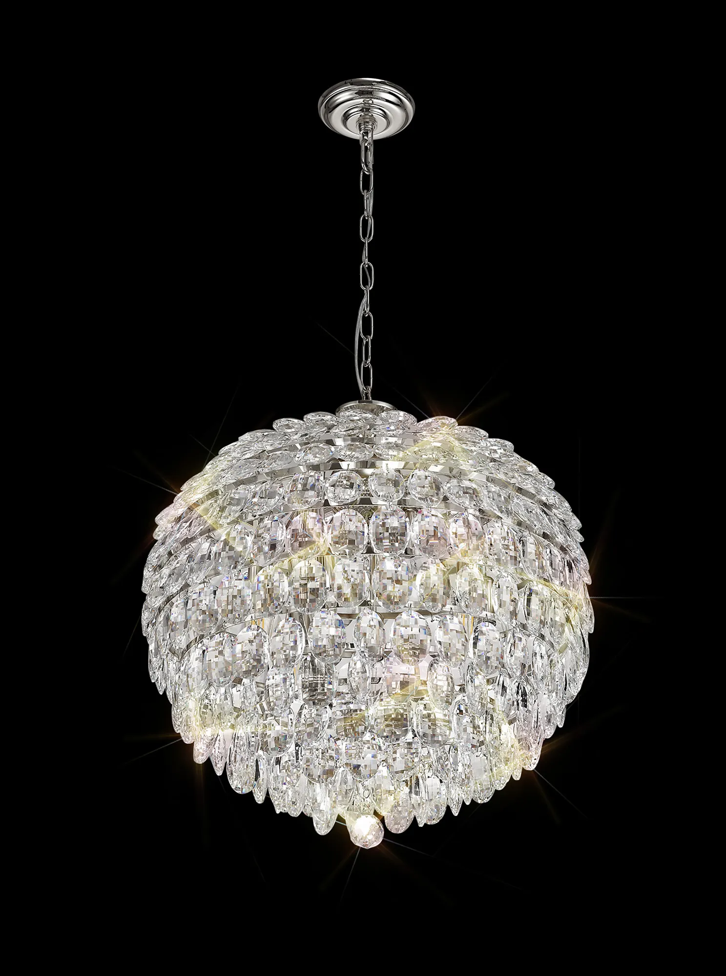 Lightologist Conifer 45cm Pendant, 6 Light E14, Polished Chrome/Crystal