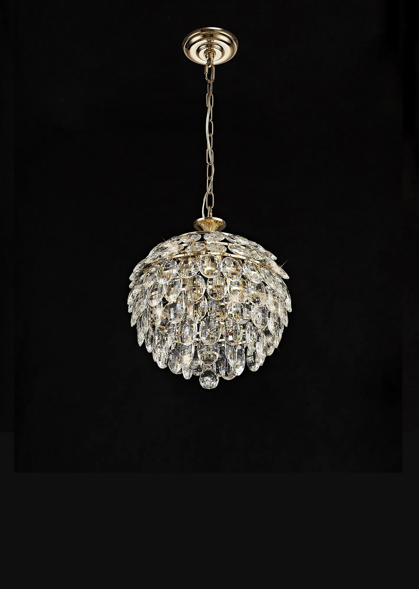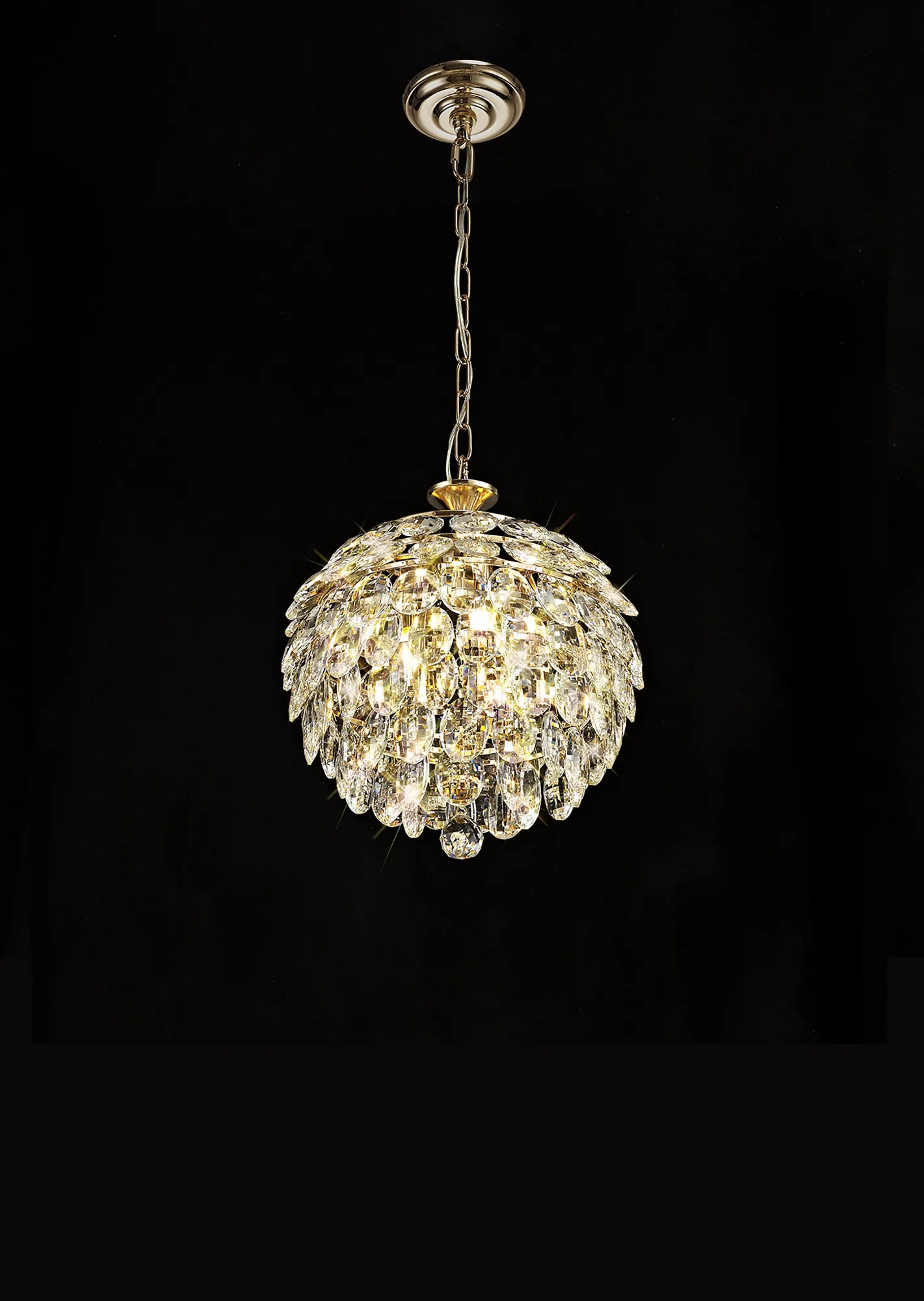 Lightologist Conifer 35cm Pendant, 3 Light E14, French Gold/Crystal
