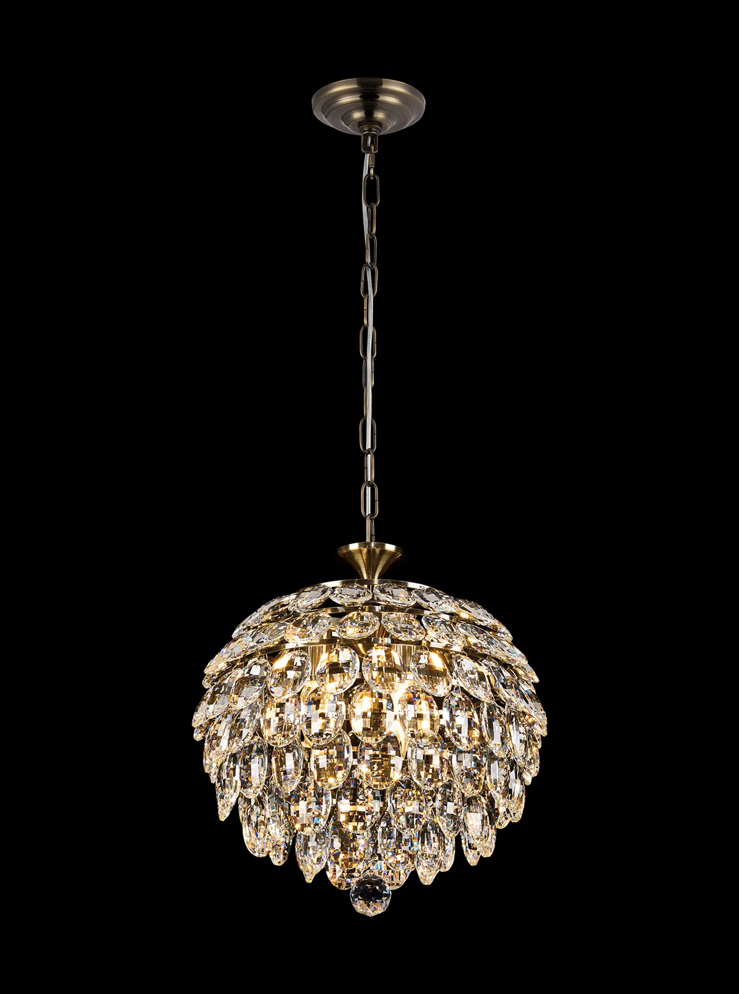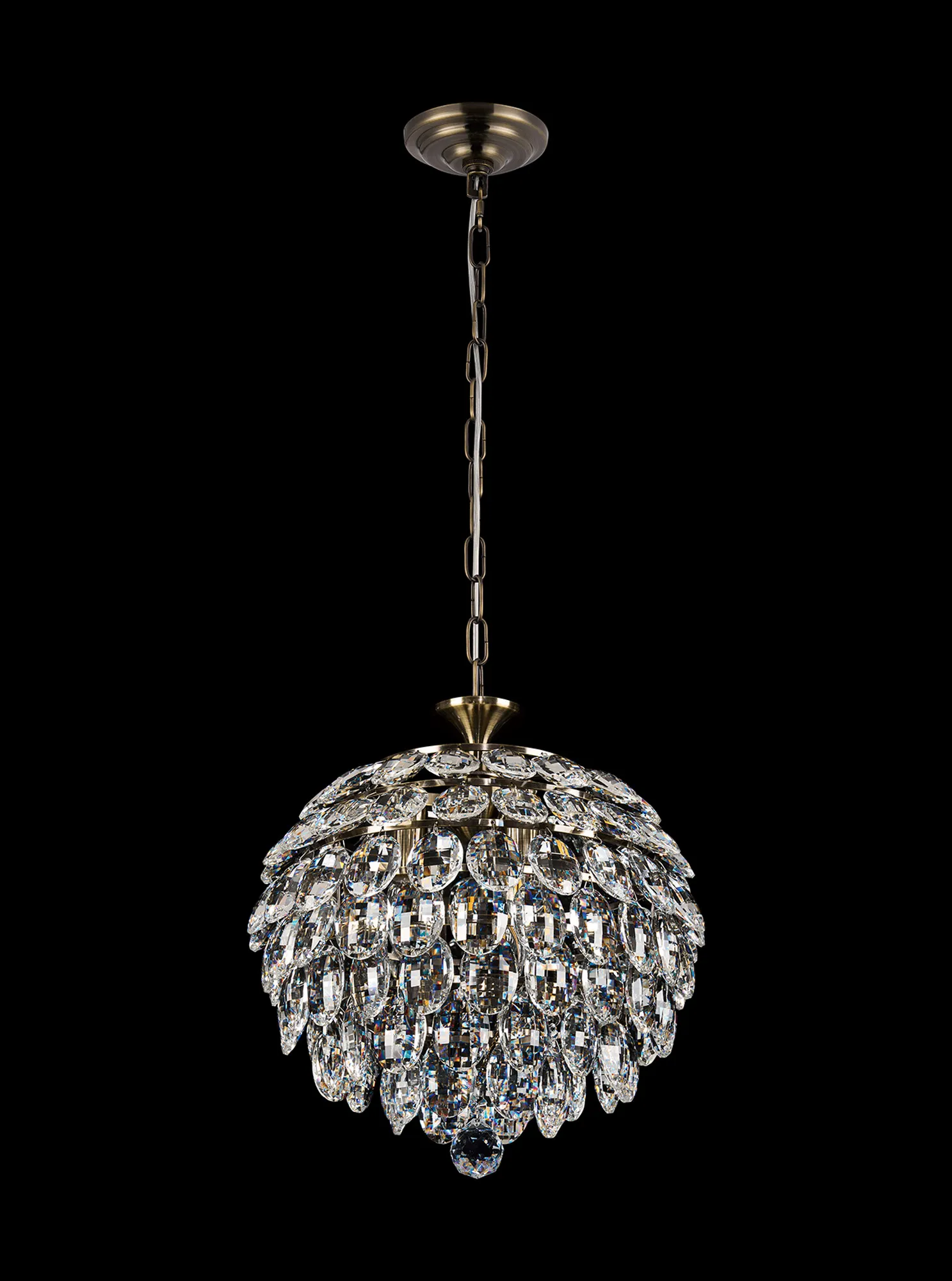 Lightologist Conifer 35cm Pendant, 3 Light E14, Antique Brass/Crystal