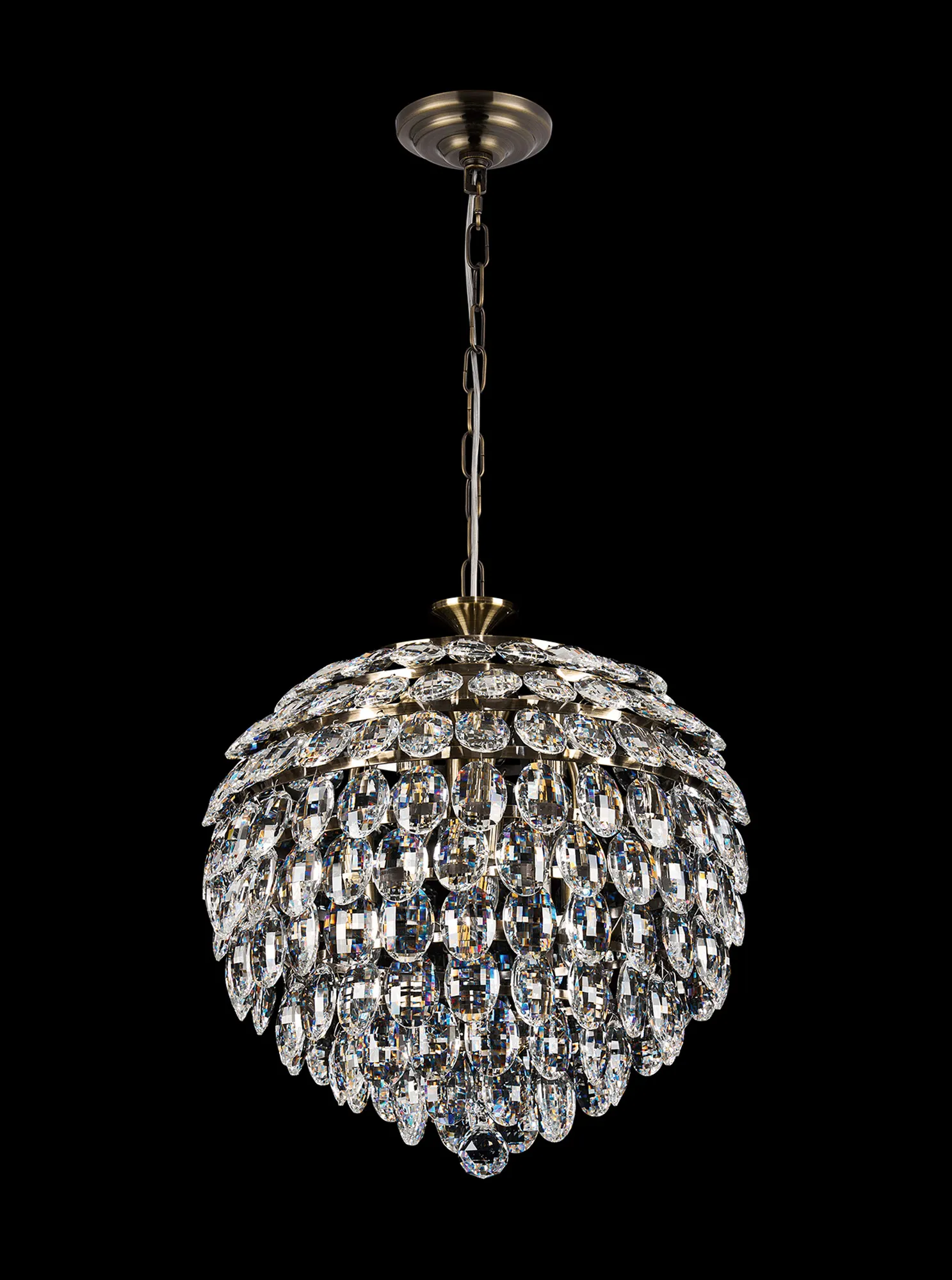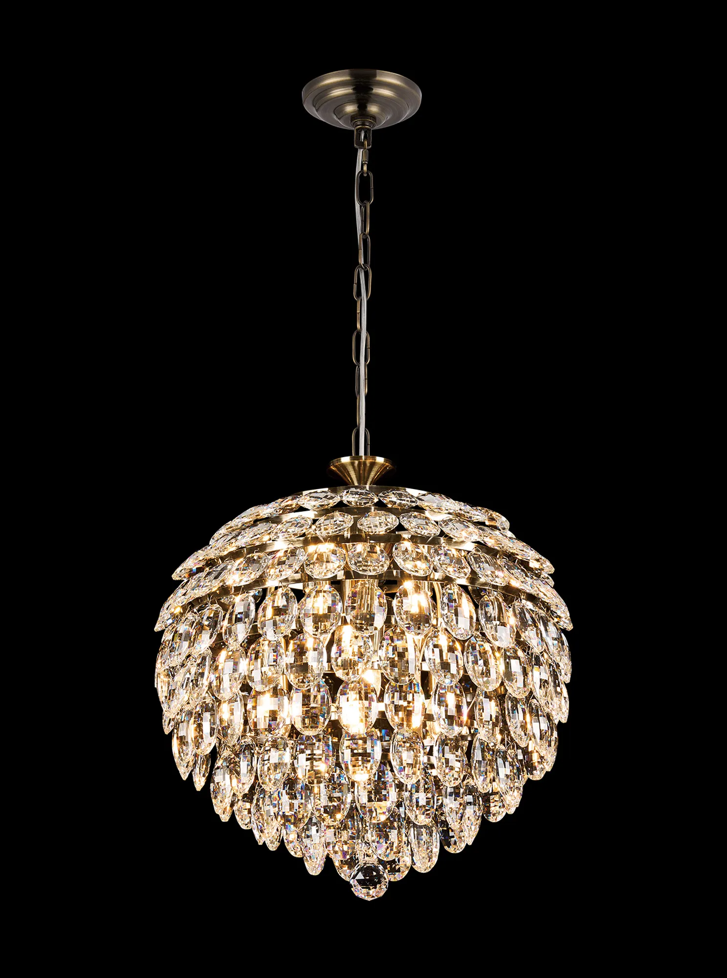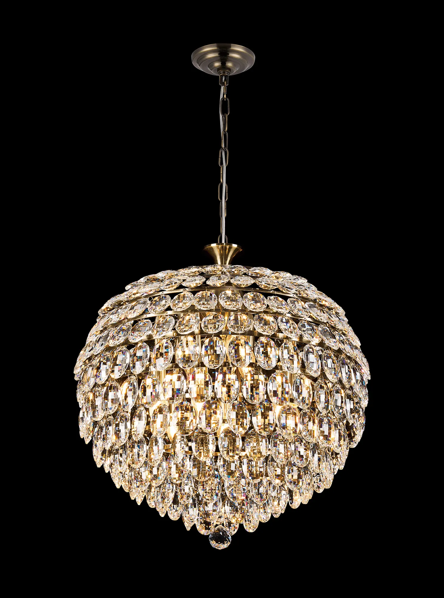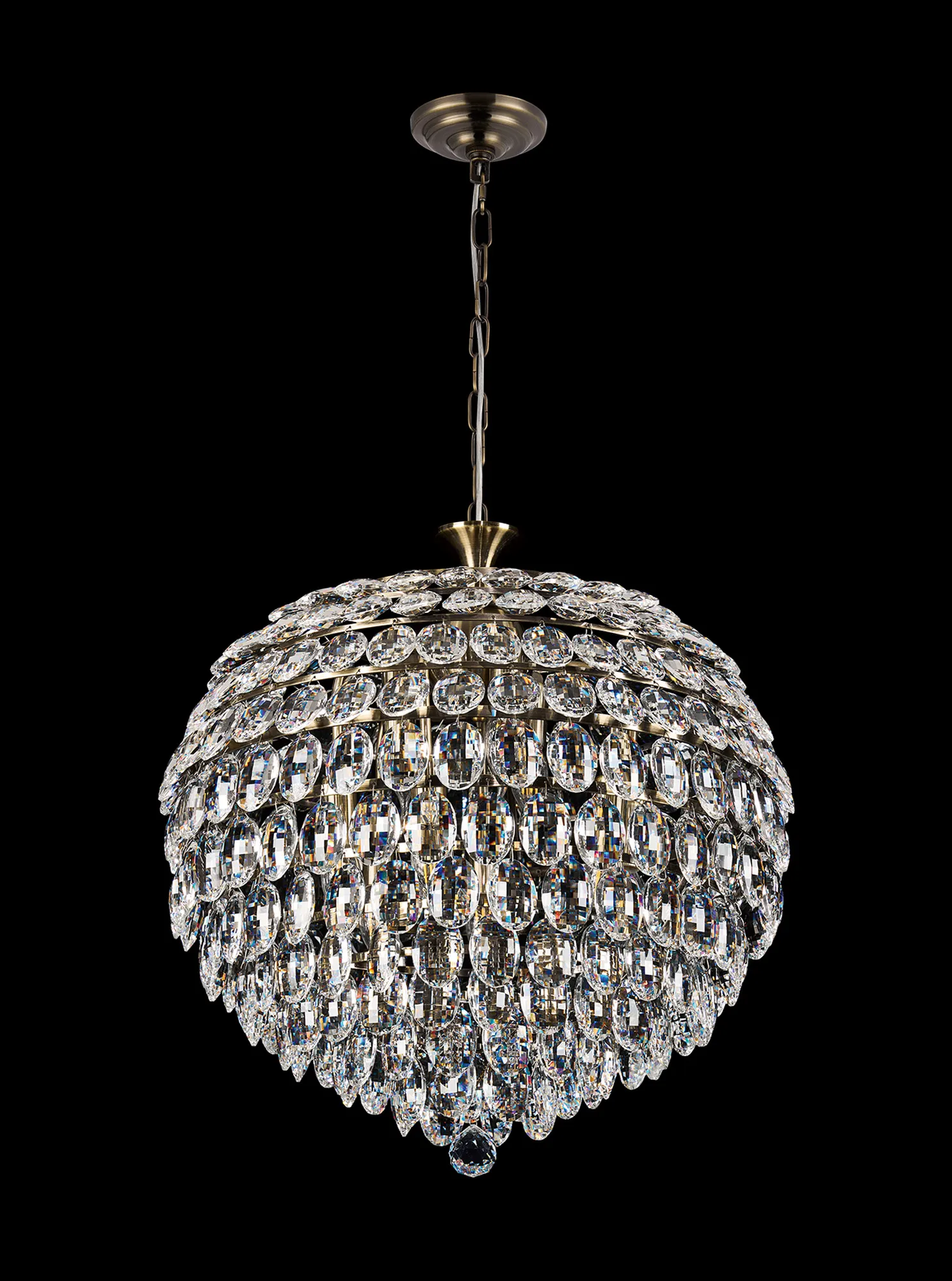 Lightologist Conifer 45cm Pendant, 6 Light E14, Antique Brass/Crystal