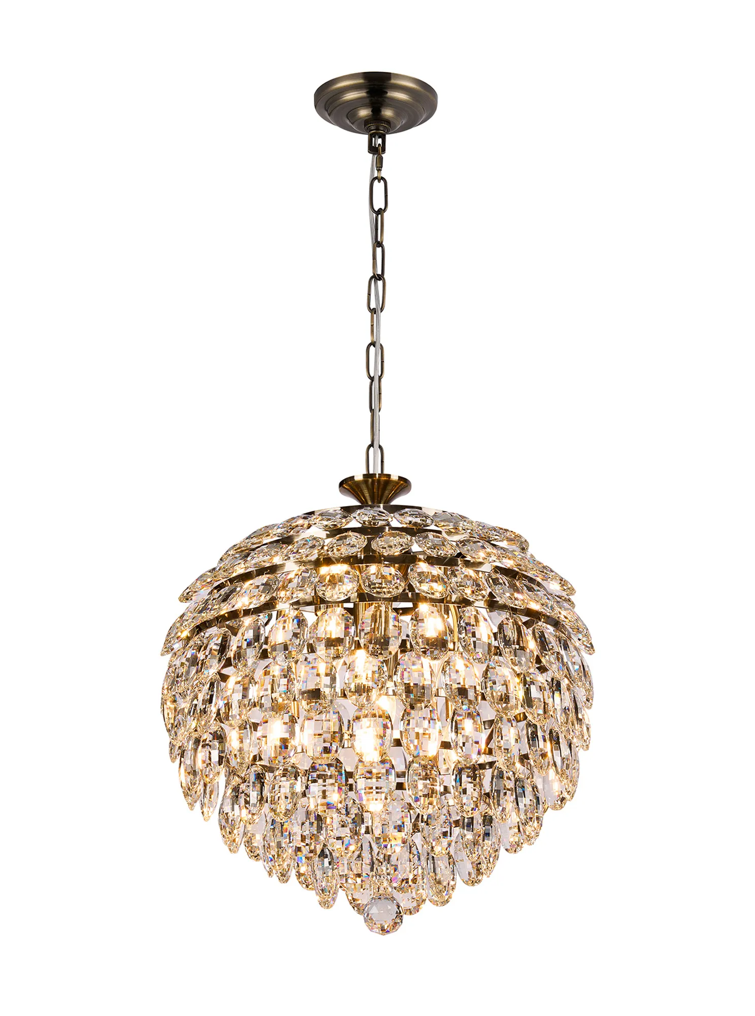 Lightologist Conifer 17cm Pendant 5 Layer, 1 Light E27, Antique Brass/Crystal