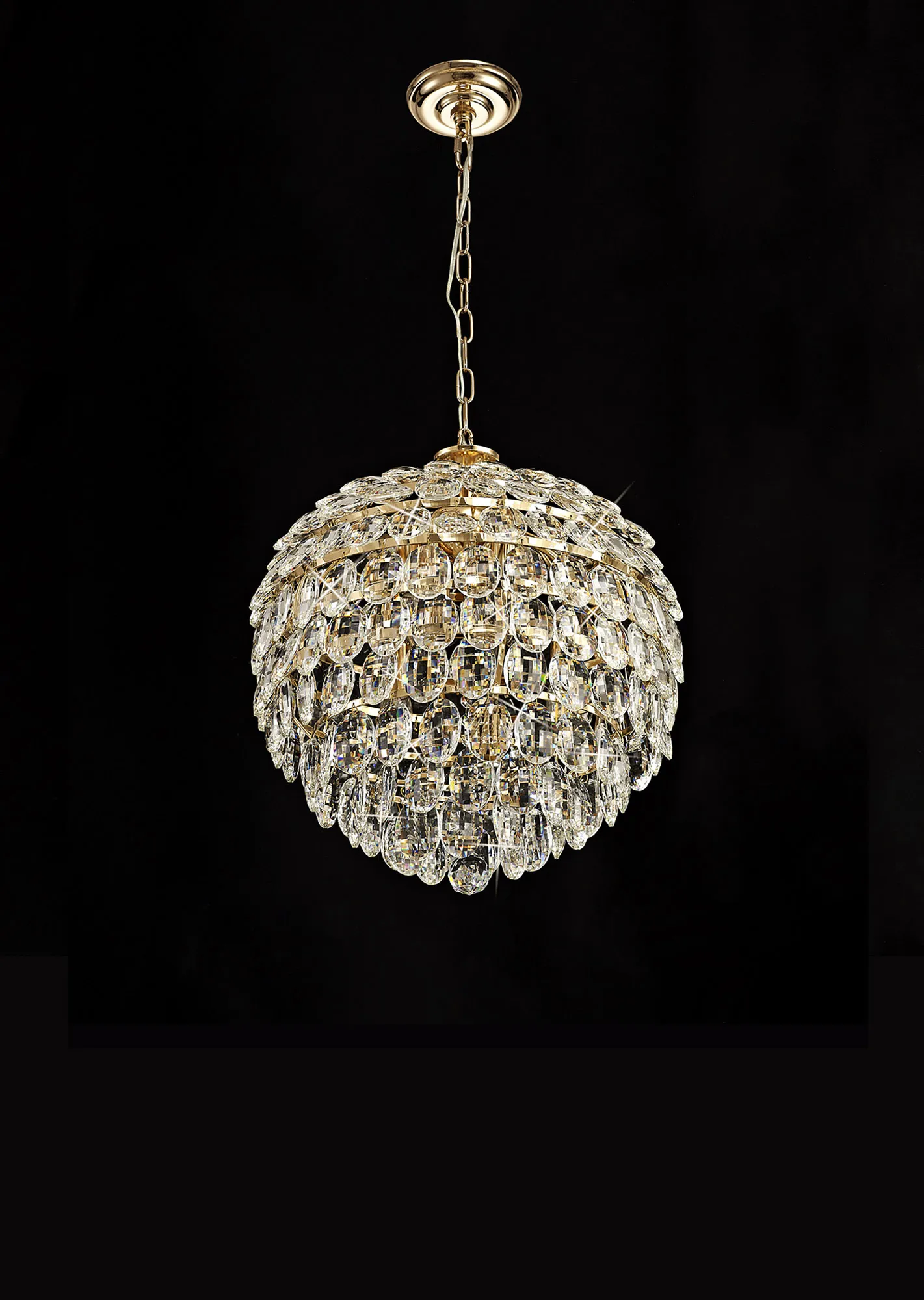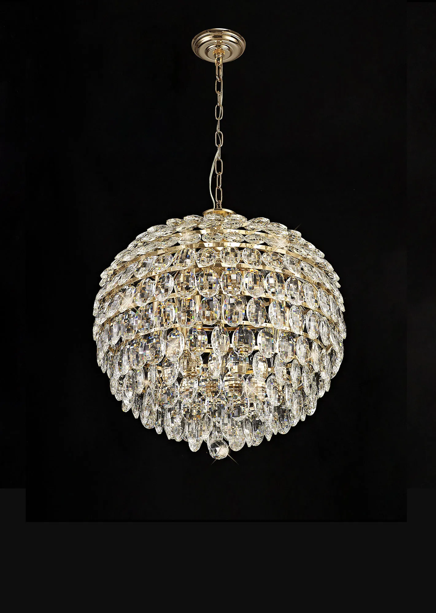 Lightologist Conifer 45cm Pendant, 6 Light E14, French Gold/Crystal
