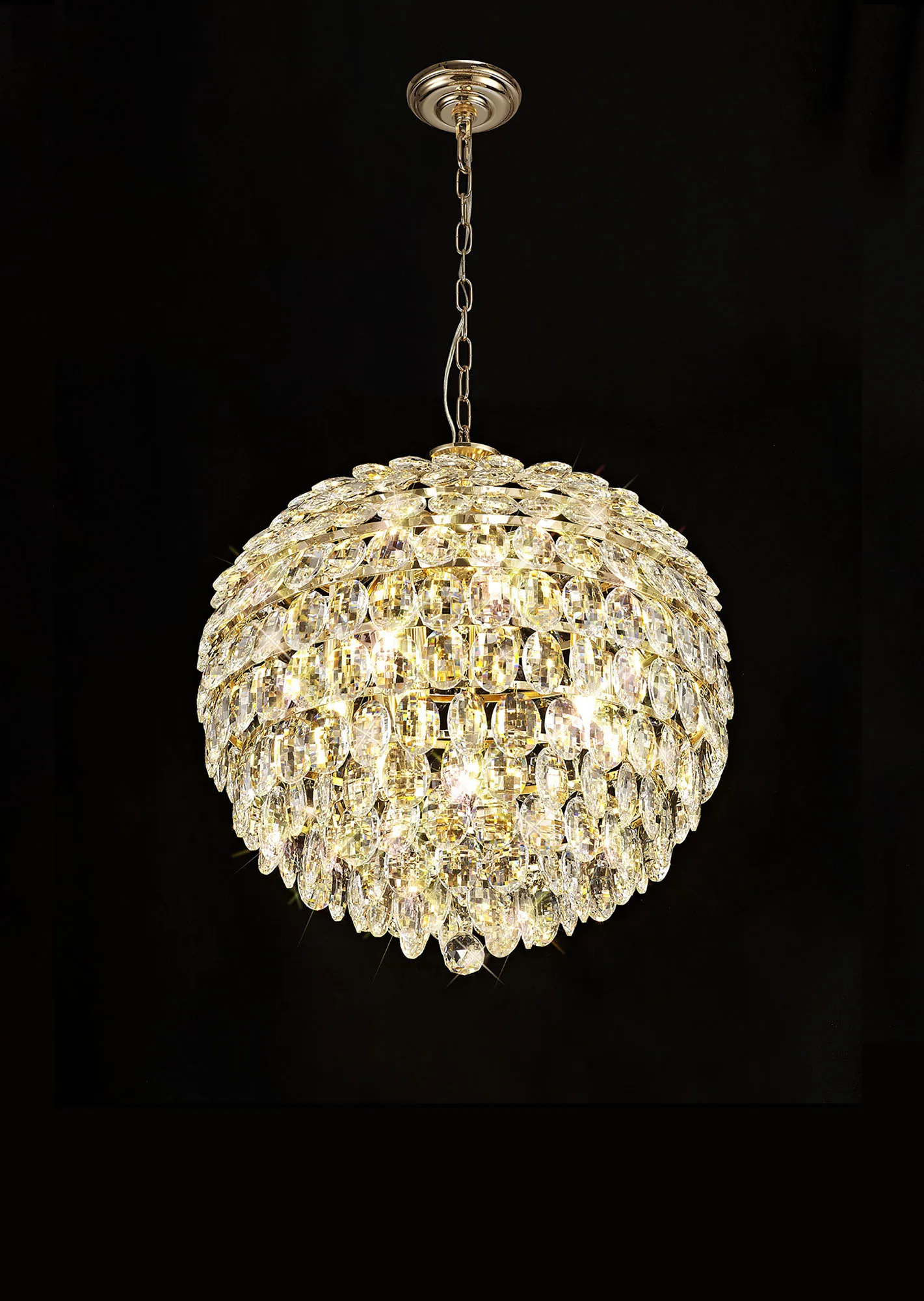 Lightologist Conifer 54cm Pendant, 9 Light E14, French Gold/Crystal
