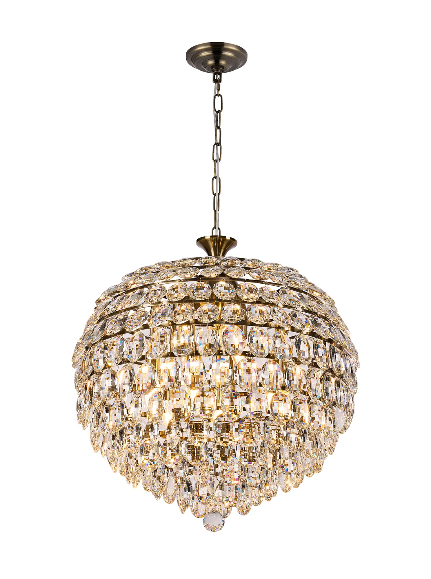 Lightologist Conifer 54cm Pendant, 9 Light E14, Antique Brass/Crystal