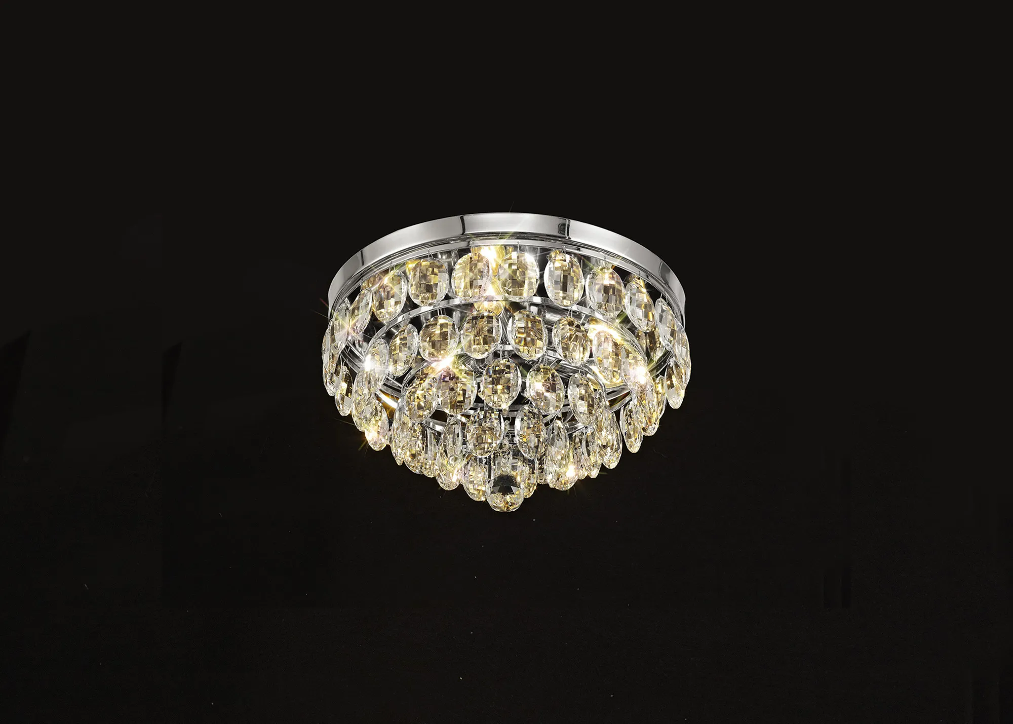 Lightologist Conifer 40cm Flush Ceiling, 3 Light E14, Polished Chrome/Crystal