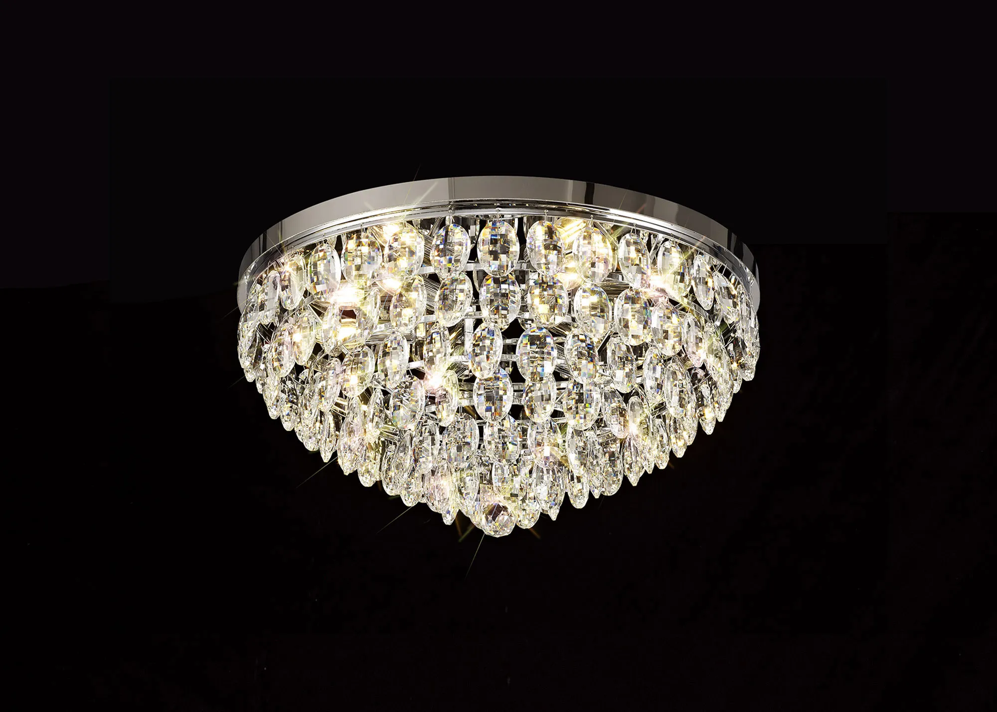 Lightologist Conifer 60cm Flush Ceiling, 6 Light E14, Polished Chrome/Crystal