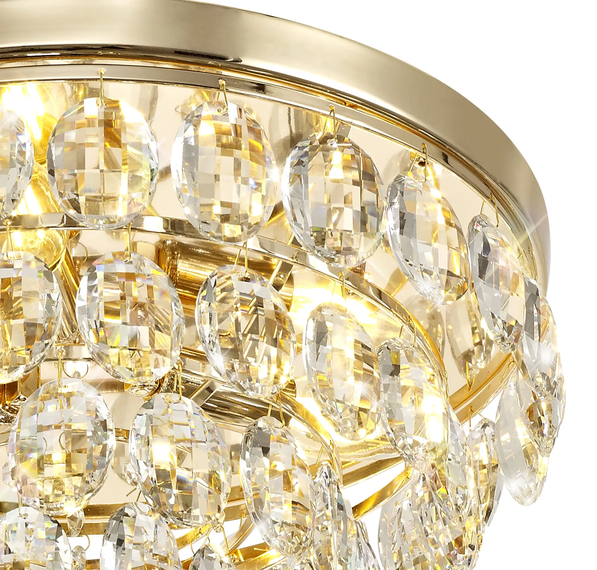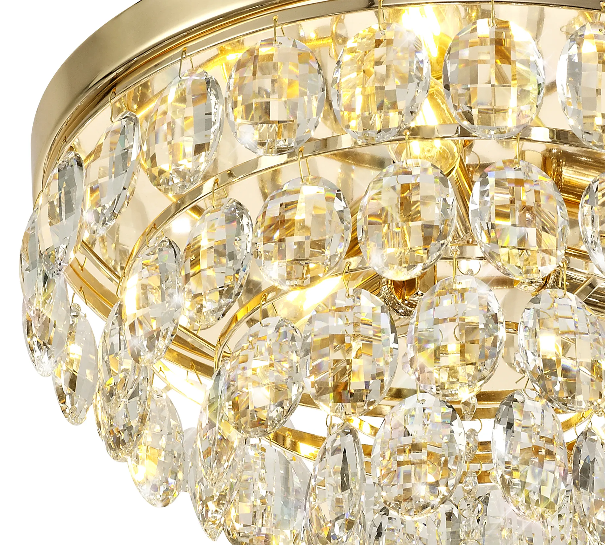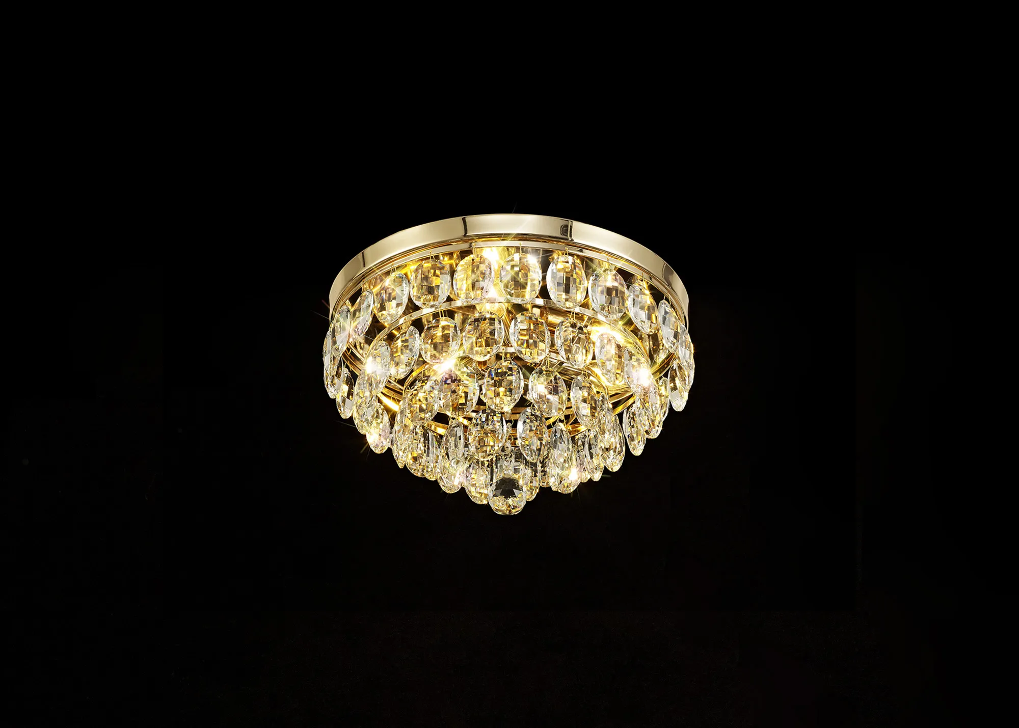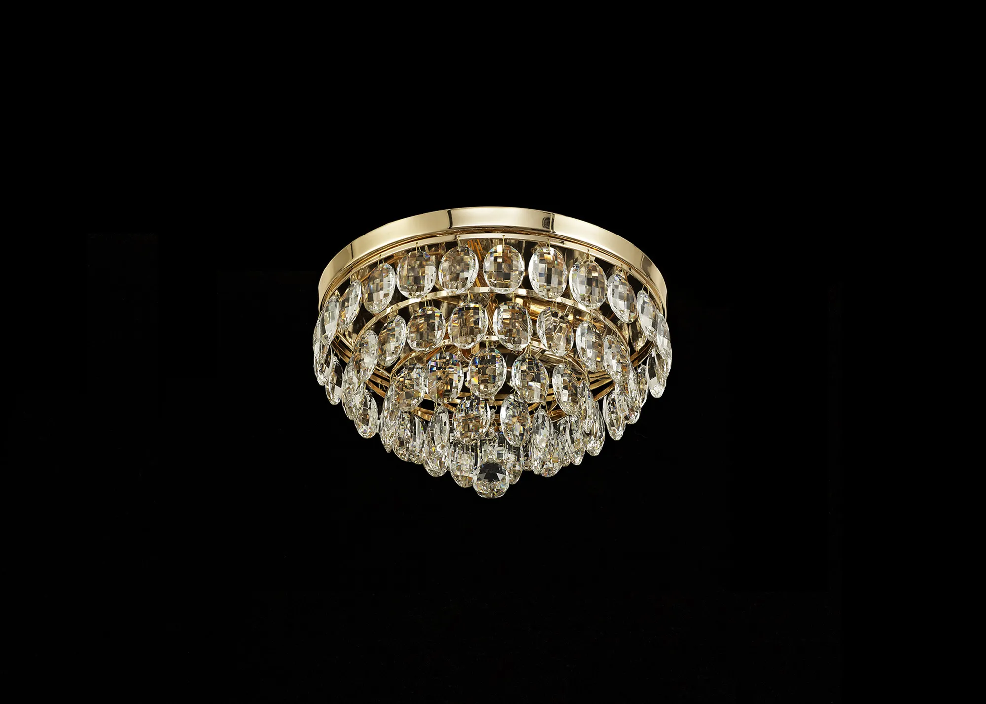 Lightologist Conifer 40cm Flush Ceiling, 3 Light E14, French Gold/Crystal
