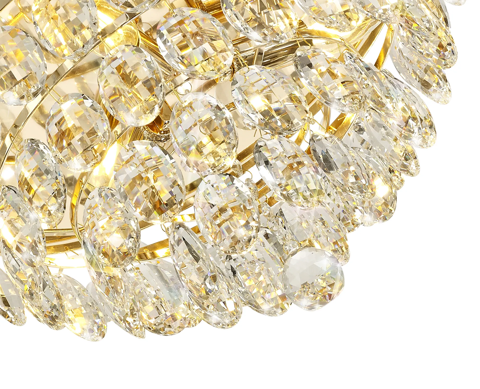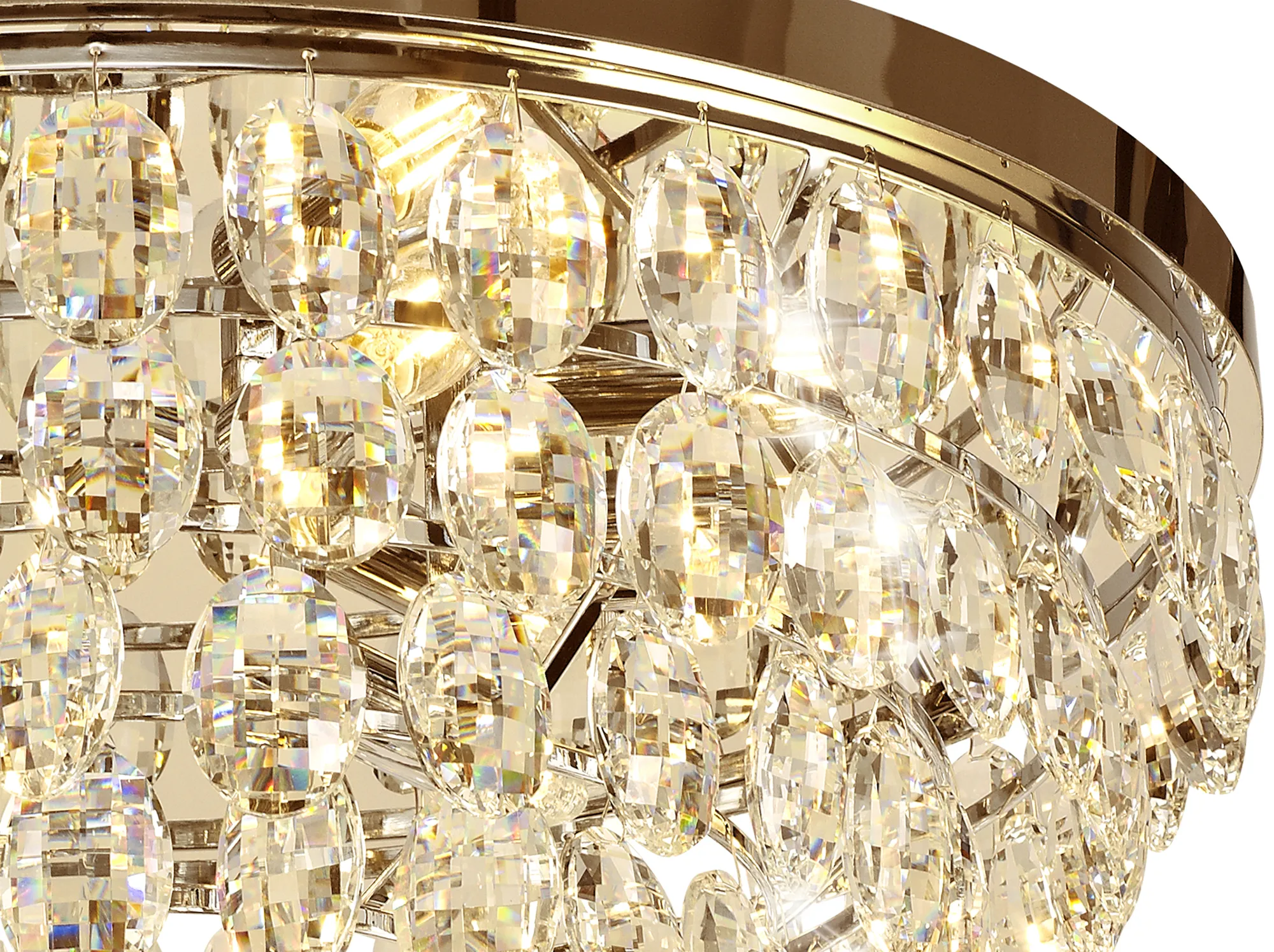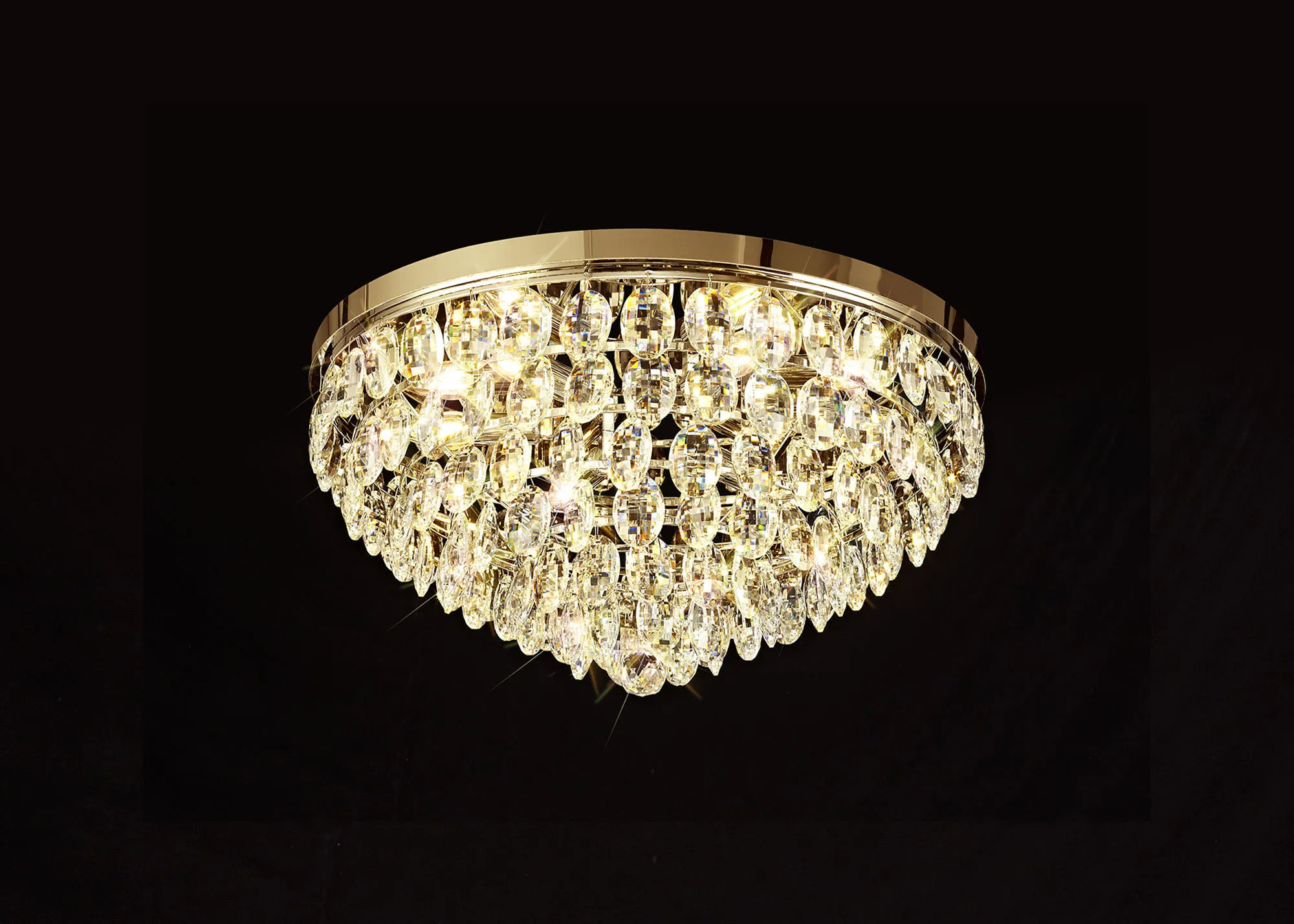 Lightologist Conifer 60cm Flush Ceiling, 6 Light E14, French Gold/Crystal