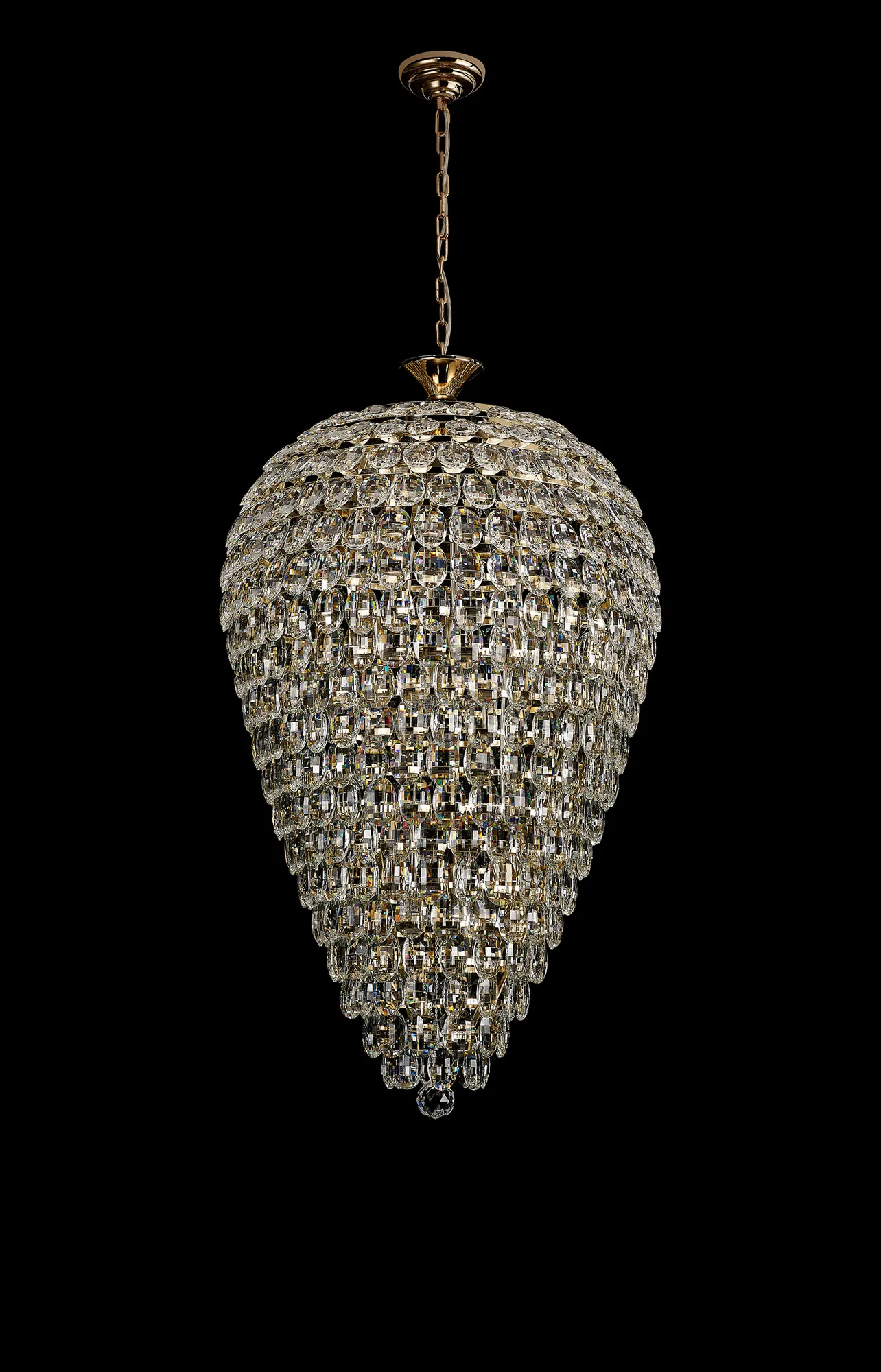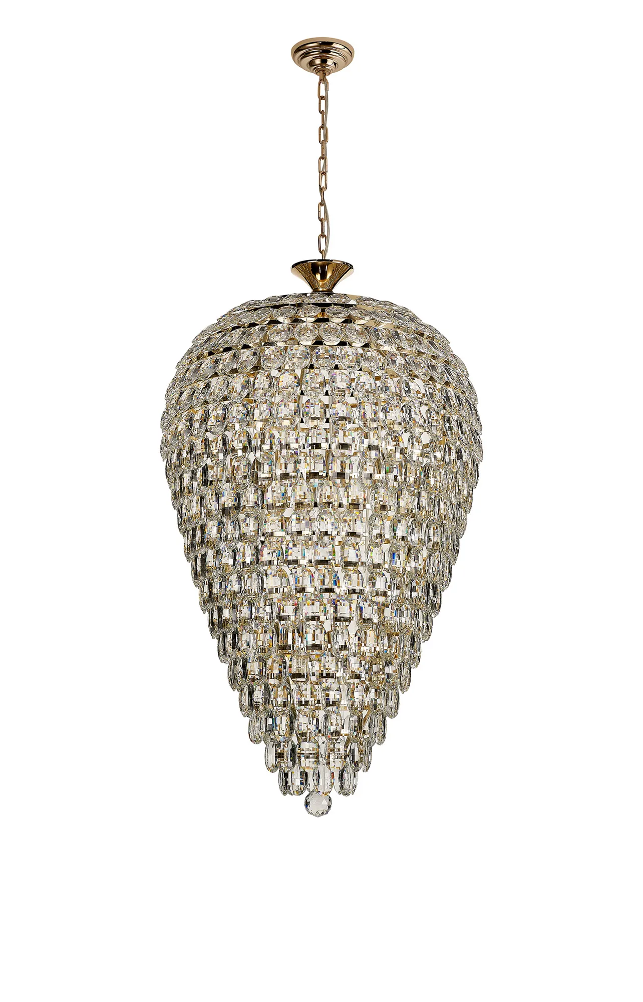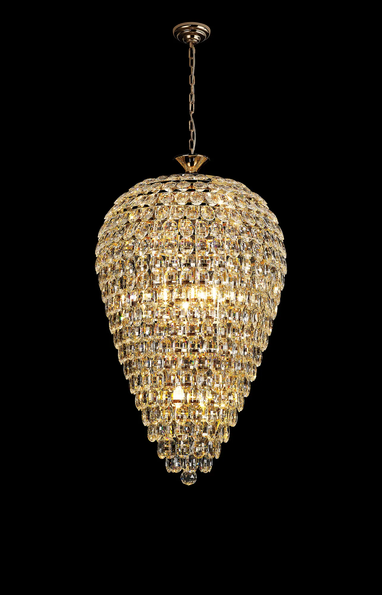 Lightologist Conifer 60cm Tall Acorn Pendant, 20 Light E14, French Gold/Crystal