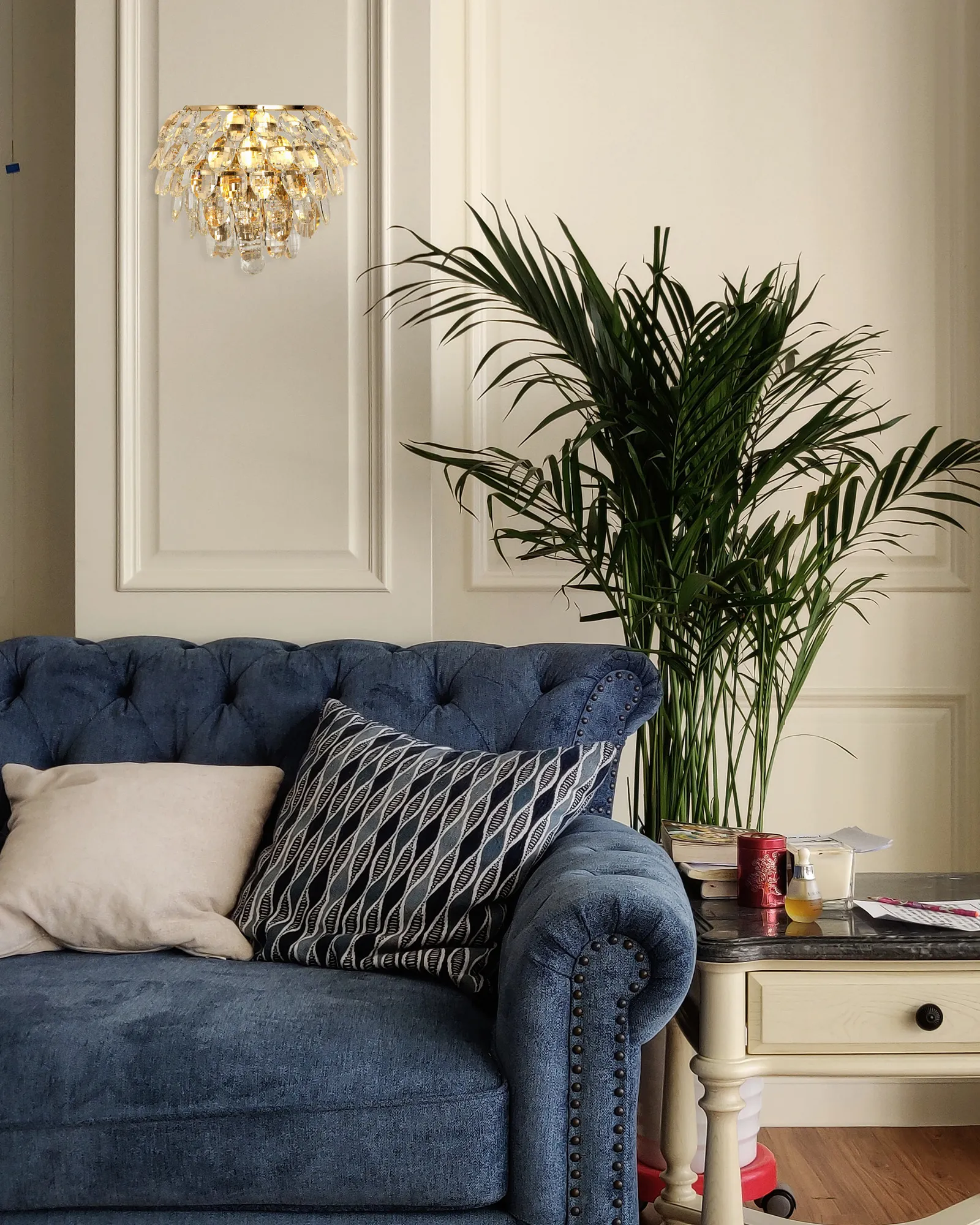 Lightologist Conifer Tall Wall Lamp, 4 Light E14, French Gold/Crystal