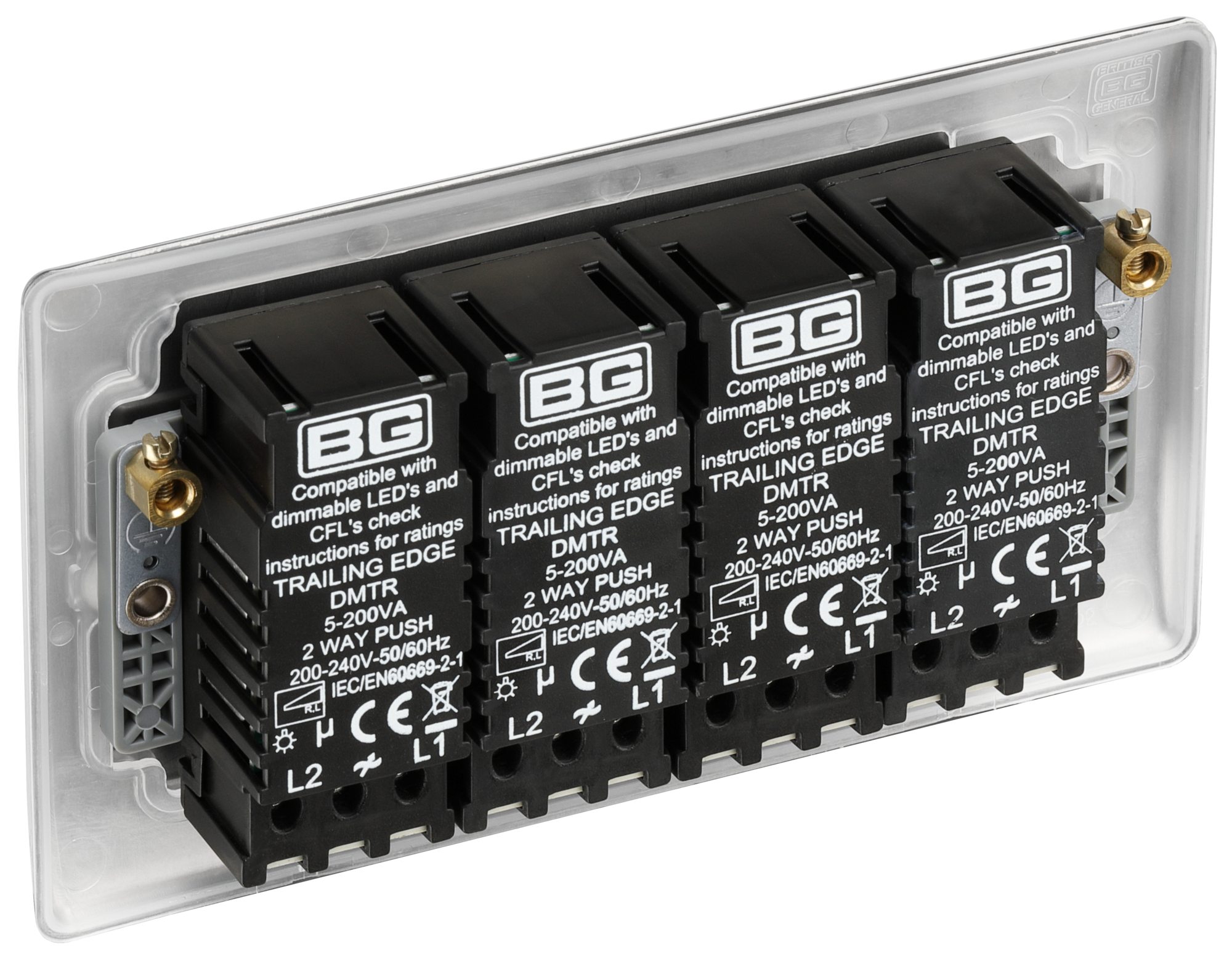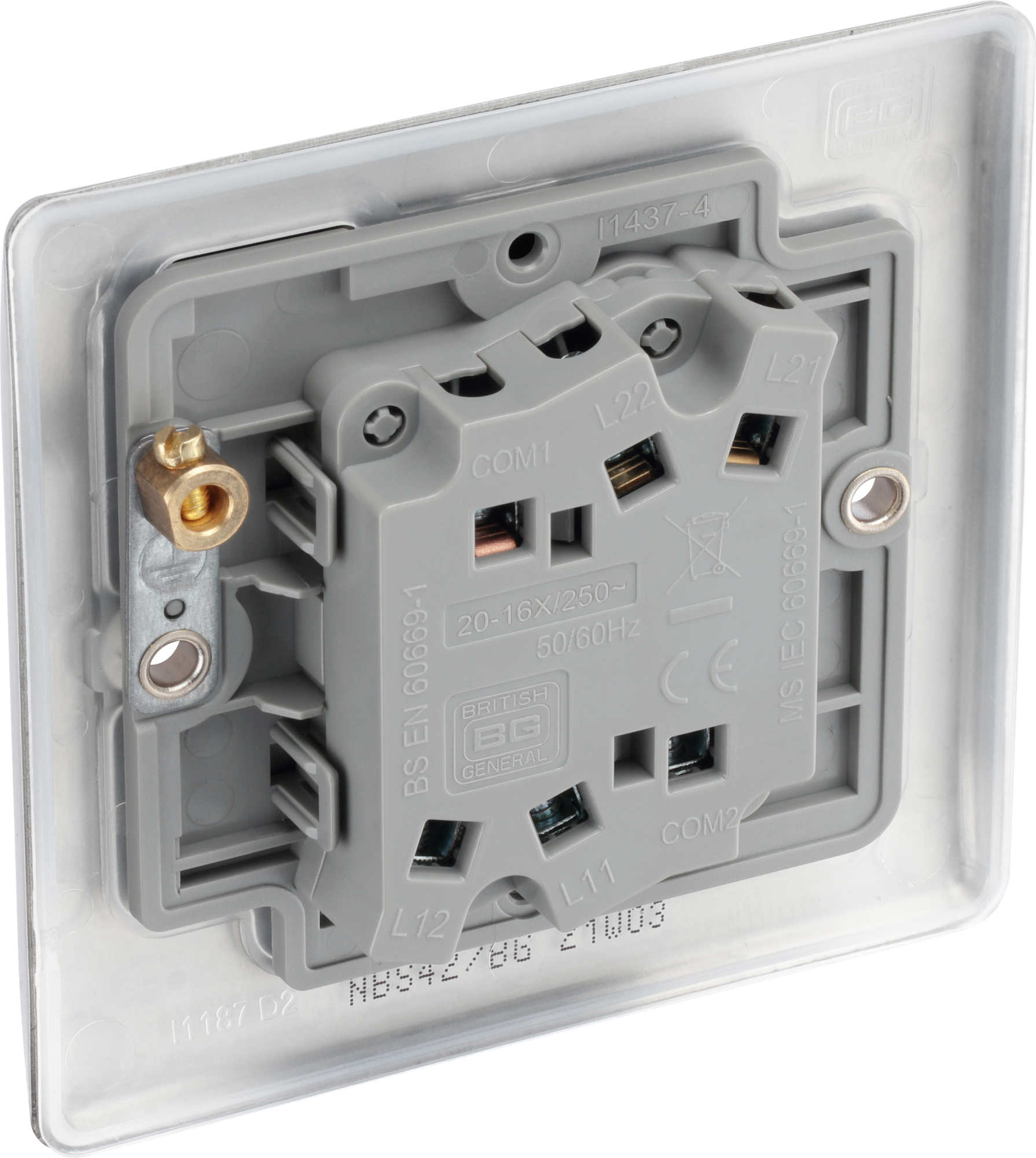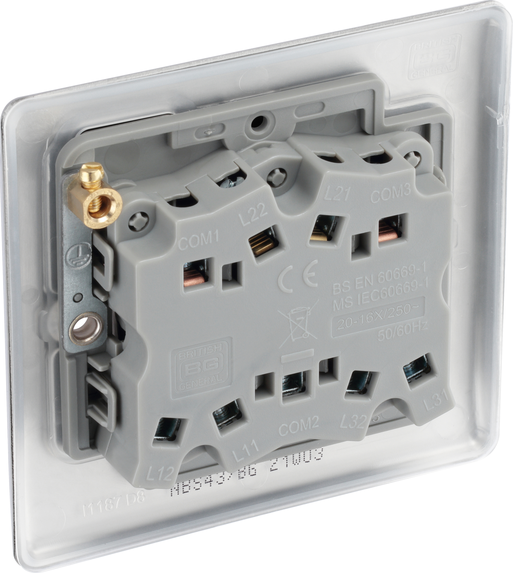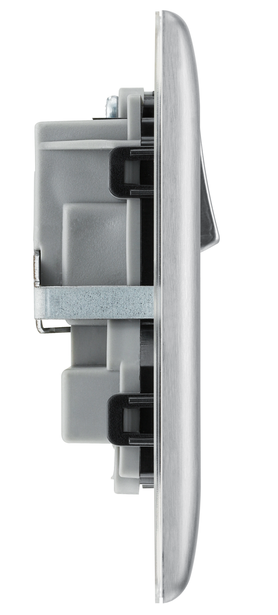 The BG Nexus Metal range of switches and sockets in decorative Brushed Steel finish, all designed with a slim profile for a modern, clean look. With no visible plastic around the switches and a lightly lacquered finish across the surface to reduce any fingerprint marks, the British General Nexus Metal series offers a high quality design.