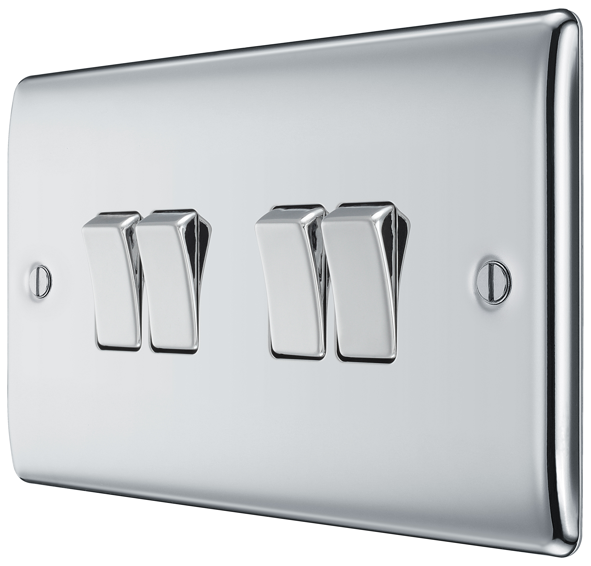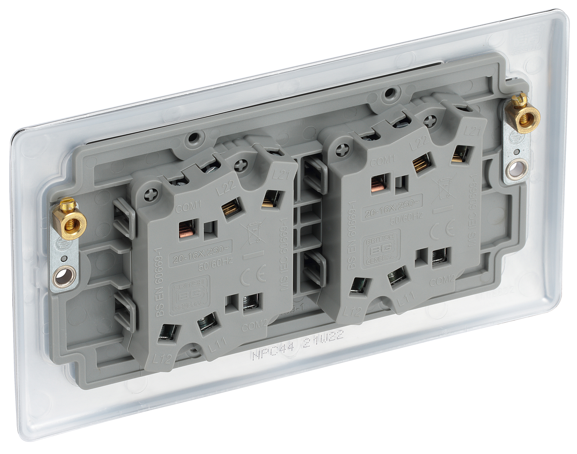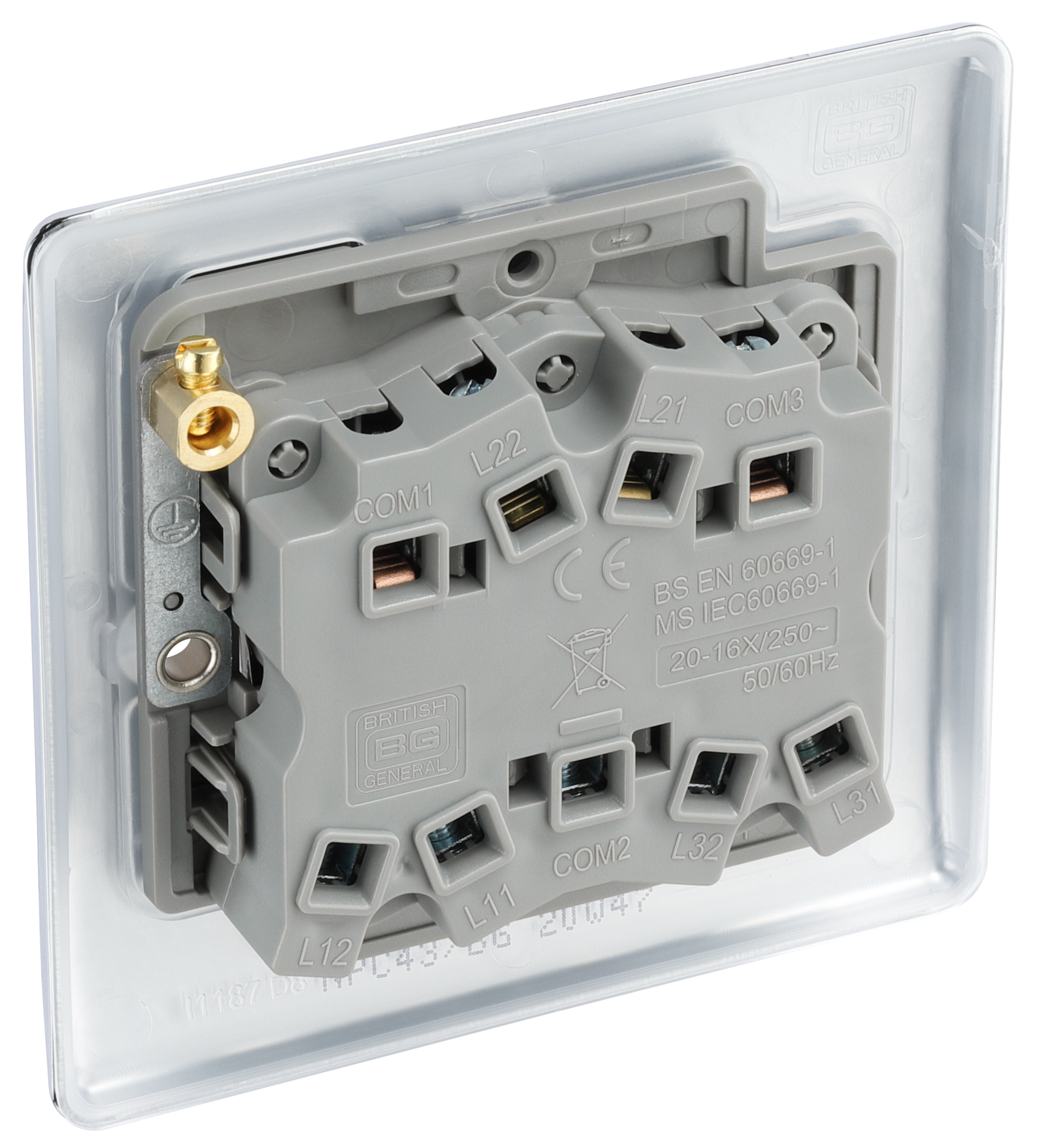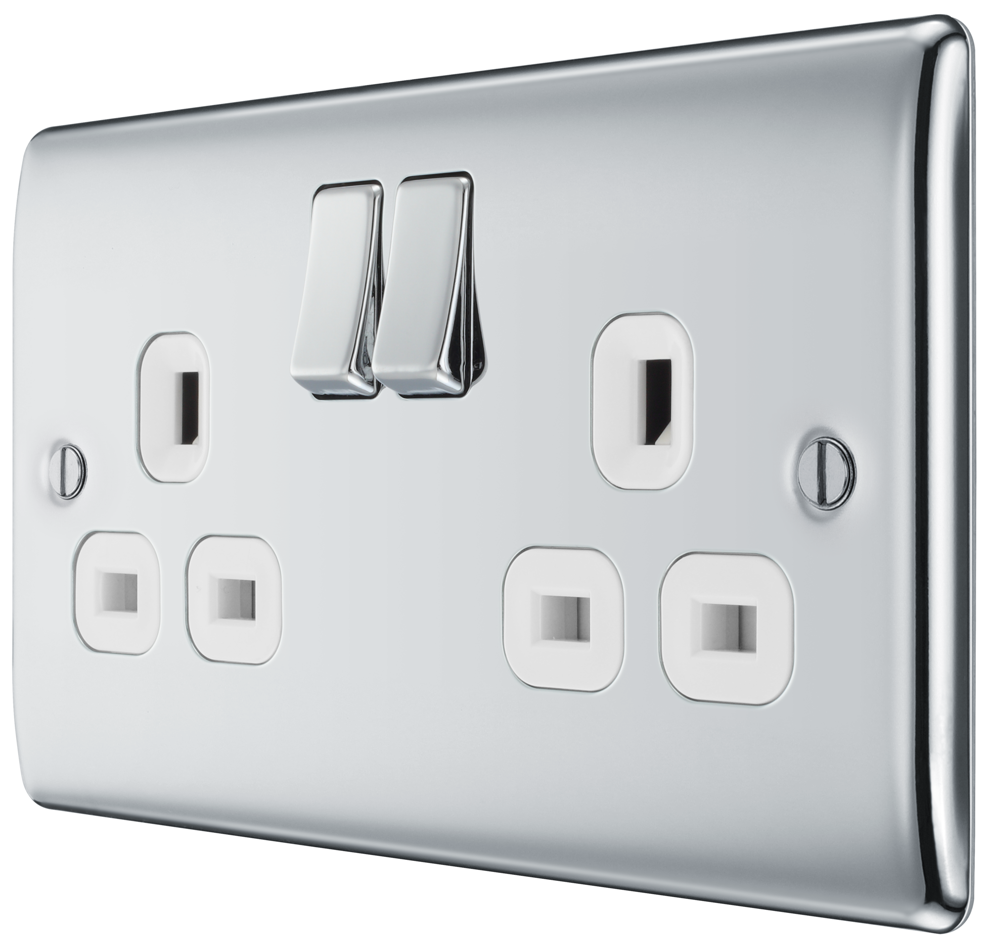 The BG Nexus Metal range of switches and sockets in decorative Polished Chrome finish, all designed with a slim profile for a modern, clean look. With no visible plastic around the switches and a lightly lacquered finish across the surface to reduce any fingerprint marks, the British General Nexus Metal series offers a high quality design.