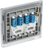 The NPCBTS2W is a double secondary telephone socket from the BG Nexus Metal range, finished in polished chrome and built using BG Nexus Euro Modular system. This range of switches and sockets has been designed with a modern, slim profile and has a lightly lacquered surface to reduce fingerprint marks. BG Nexus Metal switches and sockets come with colour coded screws and has a full grid system to match.