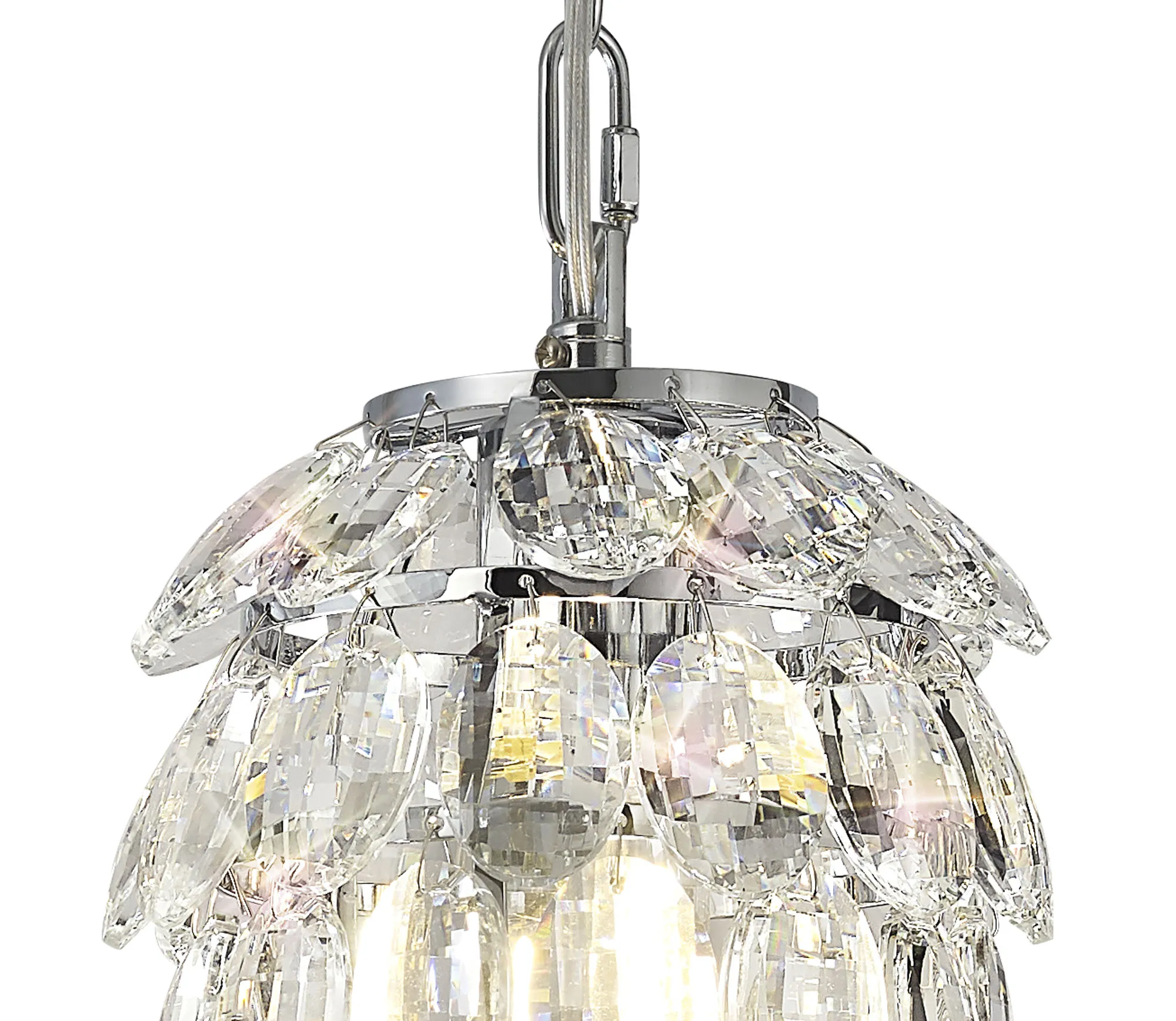 Conifer is the epitome of a stunning crystal collection. Staying true to the high quality and distinctive designs provided by Lightologist lighting, this range hosts a substantial abundance of clear crystal pieces. Delicately displayed in a tiered cascading form to outline a striking feature. Available in three colour finishes with various sizes from a 1 light pendant to a 30 light acorn and complementing table, floor & wall lights, Conifer's engaging sophistication can be displayed within a wide variation of settings.
