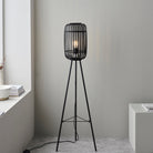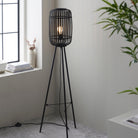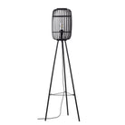 A simple and stylish floor light inspired by nature, with sustainably sourced dark bamboo cage, creating a soft warm light. Finished with matt black paint and dark wood detailing.