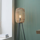 A simple and stylish floor light inspired by nature, sustainably sourced light bamboo cage, creating a soft warm light. Finished with matt black paint detailing.