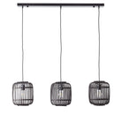 A simple and stylish three light pendant inspired by nature, with sustainably sourced dark bamboo cage, creating a soft warm light. Finished with matt black paint and dark wood detailing.
