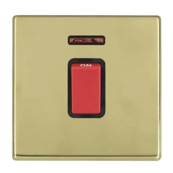 Hamilton 7G2145NB Hartland G2 Polished Brass 1 Gang 45A 2 Pole Neon Red Rocker Switch - Black Insert