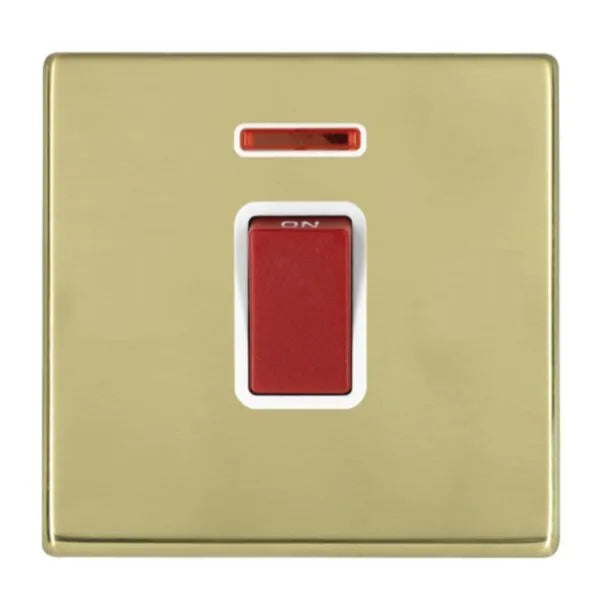 Hamilton 7G2145NW Hartland G2 Polished Brass 1 Gang 45A 2 Pole Neon Red Rocker Switch - White Insert