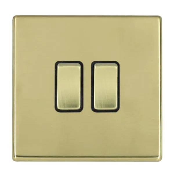 Hamilton 7G21R32PB-B Hartland G2 Polished Brass 2 Gang 10AX Intermediate Plate Switch - Black Insert