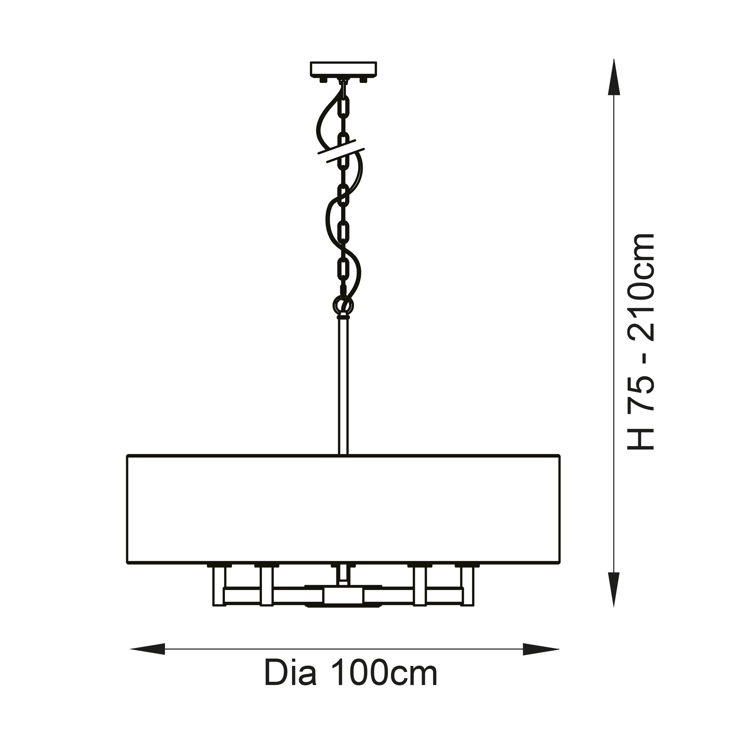 - Height adjustable 1.5 metre chain with black fabric cable