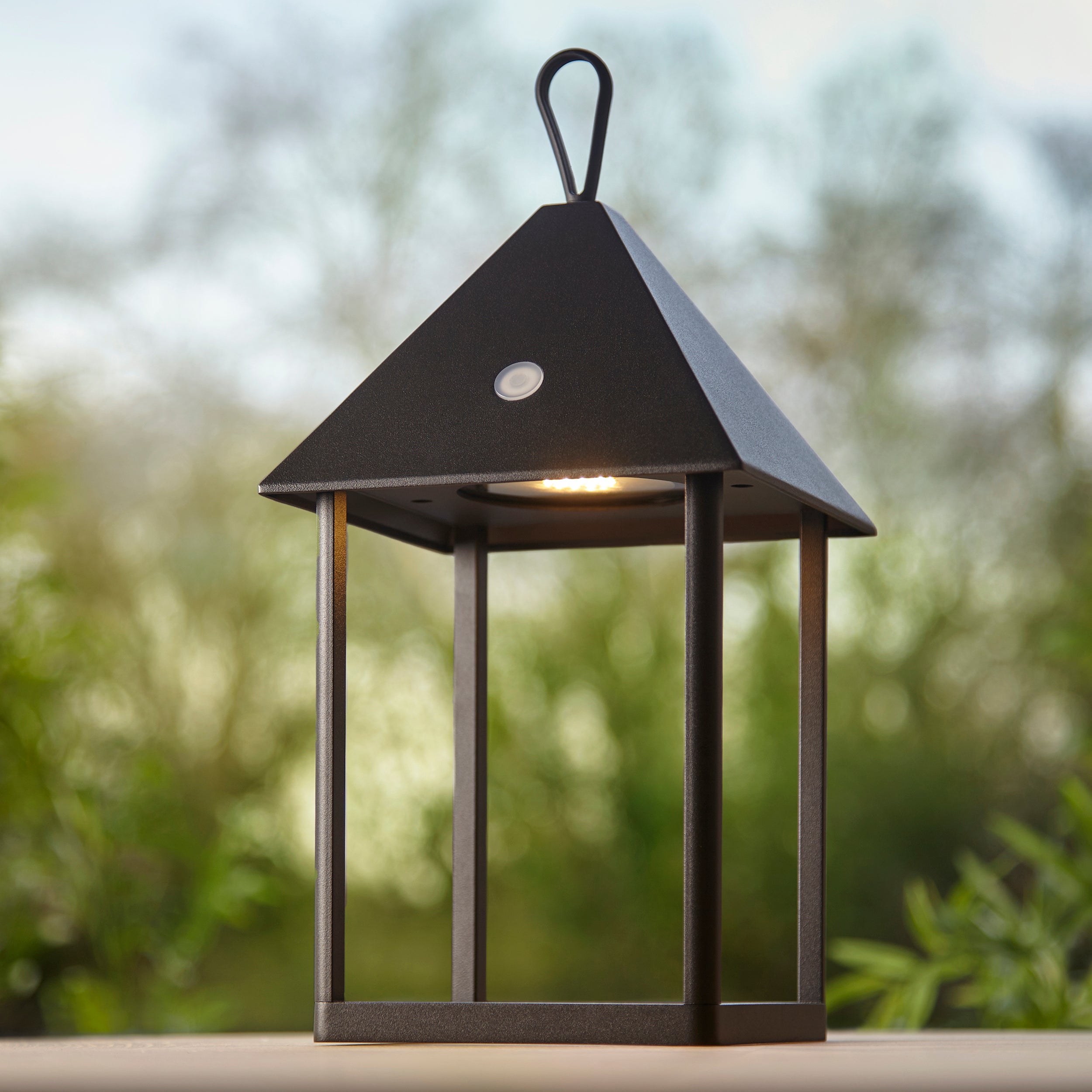 Light up your garden with character; this battery powered lantern is ideal for hanging in your outside space to create atmosphere. This modern bird house design can also be used as an attractive table light finished in a smart matt black. Also available in larger size.
