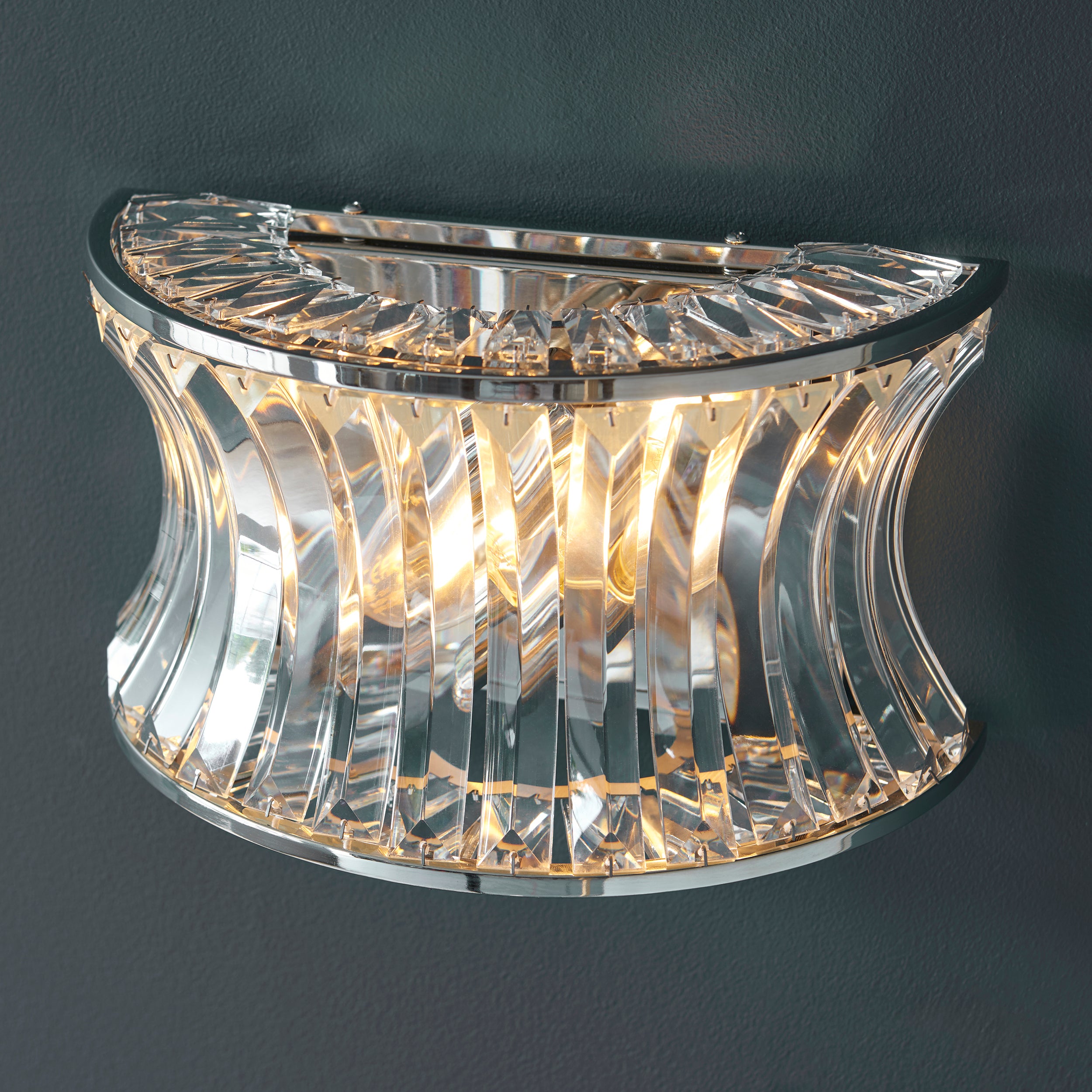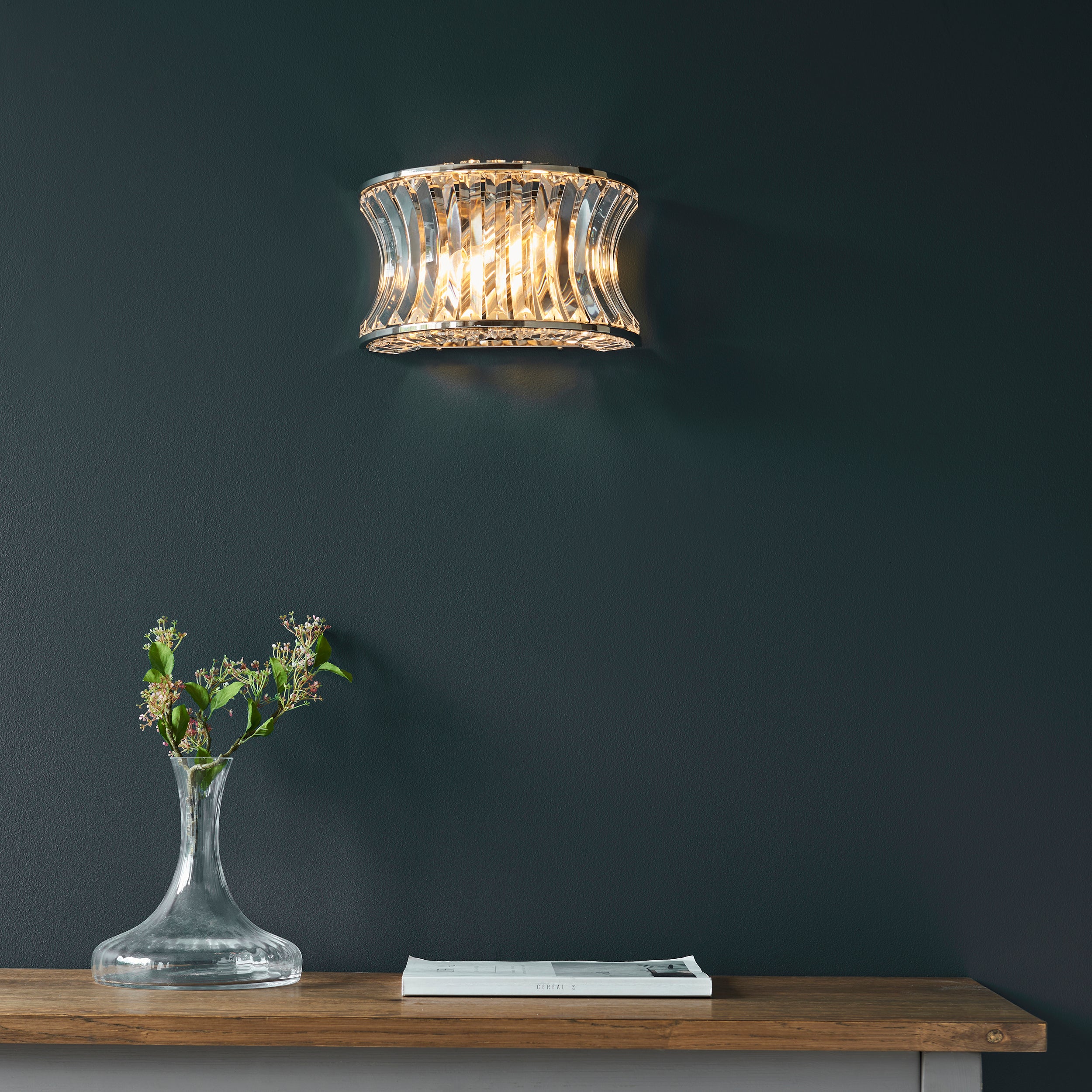 Lightologist Bright nickel plate with crystal and clear glass Glass Wall Light