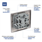The NBN55 is a 13A unswitched spur with flex outlet from the BG Nexus Metal range, finished in black nickel. This range of switches and sockets has been designed with a modern, slim profile and has a lightly lacquered surface to reduce fingerprint marks.