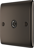 The NBN60 is a co-axial socket from the BG Nexus Metal range, finished in black nickel. This range of switches and sockets has been designed with a modern, slim profile and has a lightly lacquered surface to reduce fingerprint marks.