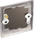 The NBN94 is a single blank plate from the BG Nexus Metal range, finished in black nickel. This range of switches and sockets has been designed with a modern, slim profile and has a lightly lacquered surface to reduce fingerprint marks.
