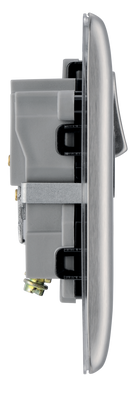 The NBS21B is a 13A single socket from the BG Nexus Metal range, finished in brushed steel with black inserts. This range of switches and sockets has been designed with a modern, slim profile and has a lightly lacquered surface to reduce fingerprint marks. The BG Nexus Metal range of switches and sockets comes with colour coded screws and has a full grid system to match.