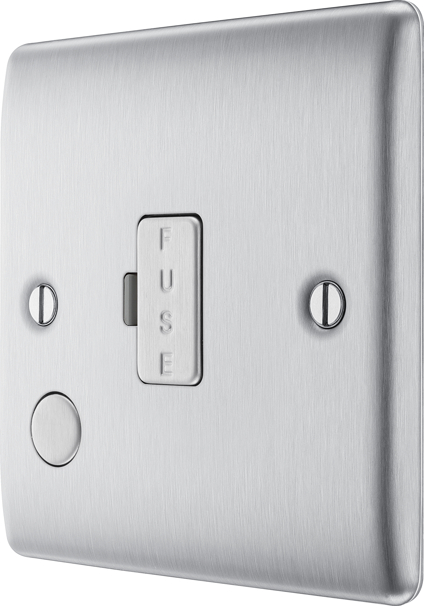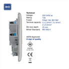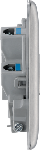 The NBS55 is a 13A unswitched spur with flex from the BG Nexus Metal range, finished in brushed steel. This range of switches and sockets has been designed with a modern, slim profile and has a lightly lacquered surface to reduce fingerprint marks. The BG Nexus Metal range of switches and sockets comes with colour coded screws and has a full grid system to match.