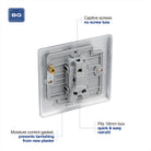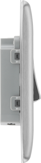 The NBS12 is a 1G 2W light switch from the BG Nexus Metal range, finished in brushed steel. This range of switches and sockets has been designed with a modern, slim profile and has a lightly lacquered surface to reduce fingerprint marks. The BG Nexus Metal range of switches and sockets comes with colour coded screws and has a full grid system to match.