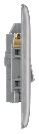 The NBS31 is a 20A Double Pole switch with neon from the BG Nexus Metal range, finished in brushed steel. This range of switches and sockets has been designed with a modern, slim profile and has a lightly lacquered surface to reduce fingerprint marks. The BG Nexus Metal range of switches and sockets comes with colour coded screws and has a full grid system to match.