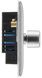 The NBS83 is a 3G dimmer switch from the BG Nexus Metal range, finished in brushed steel. This range of switches and sockets has been designed with a modern, slim profile and has a lightly lacquered surface to reduce fingerprint marks. The BG Nexus Metal range of switches and sockets comes with colour coded screws and has a full grid system to match.
