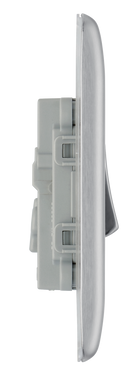 The NBS13 is a intermediate light switch from the BG Nexus Metal range, finished in brushed steel. This range of switches and sockets has been designed with a modern, slim profile and has a lightly lacquered surface to reduce fingerprint marks. The BG Nexus Metal range of switches and sockets comes with colour coded screws and has a full grid system to match.