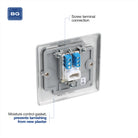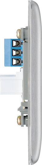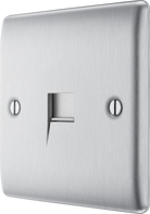 The NBSBTS1 is a secondary telephone socket from the BG Nexus Metal range, finished in brushed steel. This range of switches and sockets has been designed with a modern, slim profile and has a lightly lacquered surface to reduce fingerprint marks. The BG Nexus Metal range of switches and sockets comes with colour coded screws and has a full grid system to match.