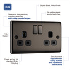 The NBN22B is a 13A double socket from the BG Nexus Metal range, finished in black nickel with black inserts. This range of switches and sockets has been designed with a modern, slim profile and has a lightly lacquered surface to reduce fingerprint marks.
