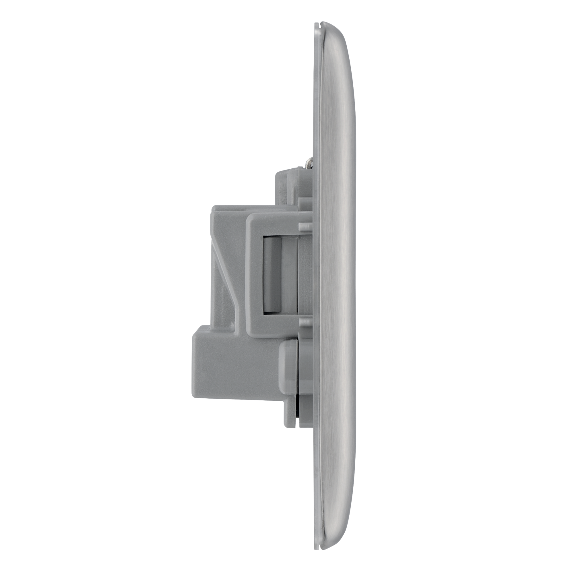 The NBS29G is a 5A unswitched socket from the BG Nexus Metal range, finished in brushed steel with grey inserts. This range of switches and sockets has been designed with a modern, slim profile and has a lightly lacquered surface to reduce fingerprint marks. The BG Nexus Metal range of switches and sockets comes with colour coded screws and has a full grid system to match.