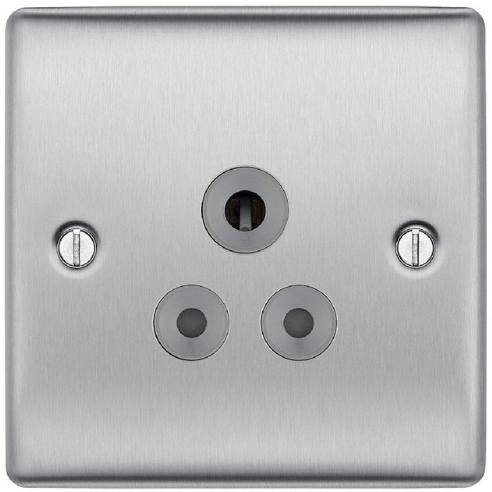 BG Nexus Metal Brushed Steel Single Round Pin Unswitched 5A Socket NBS29G