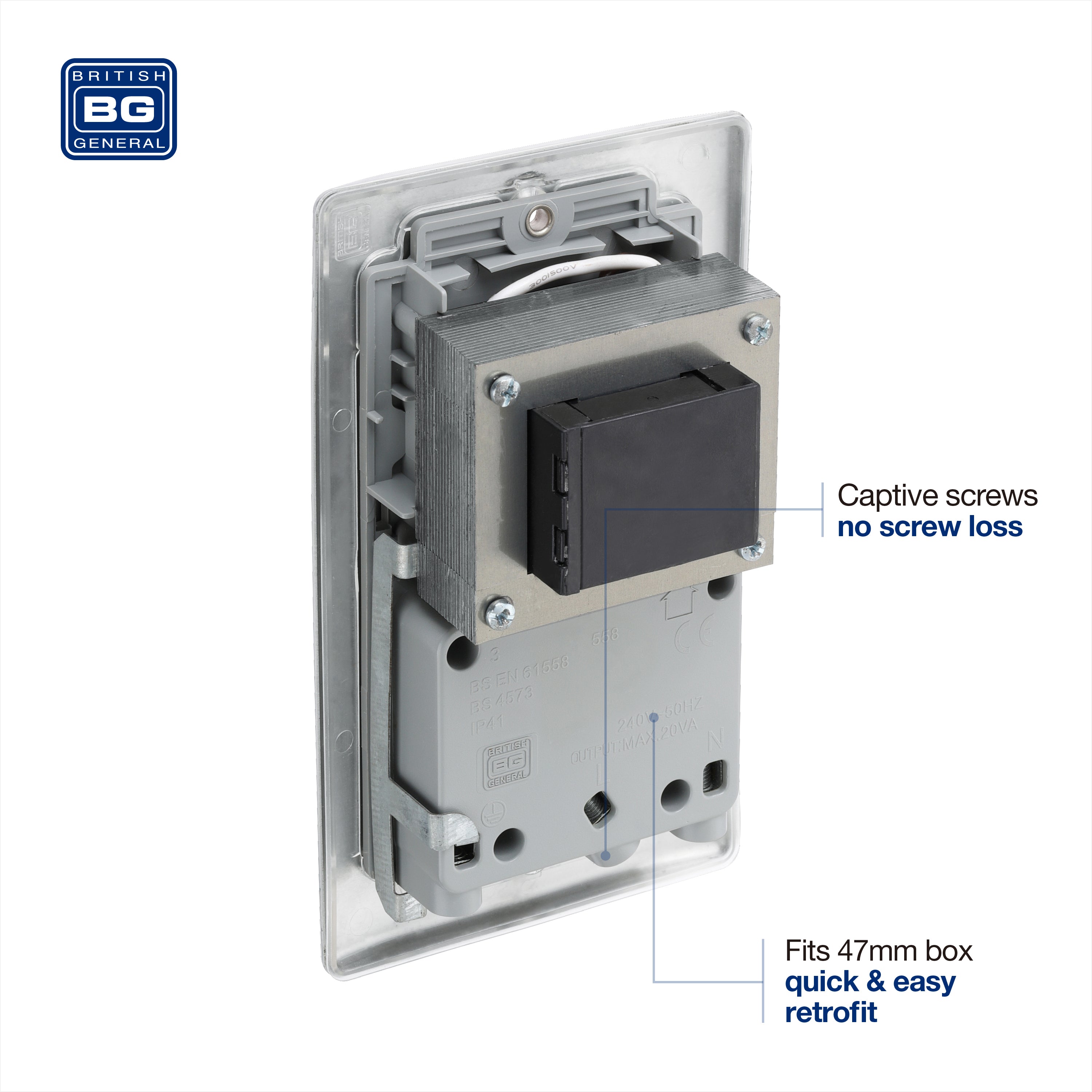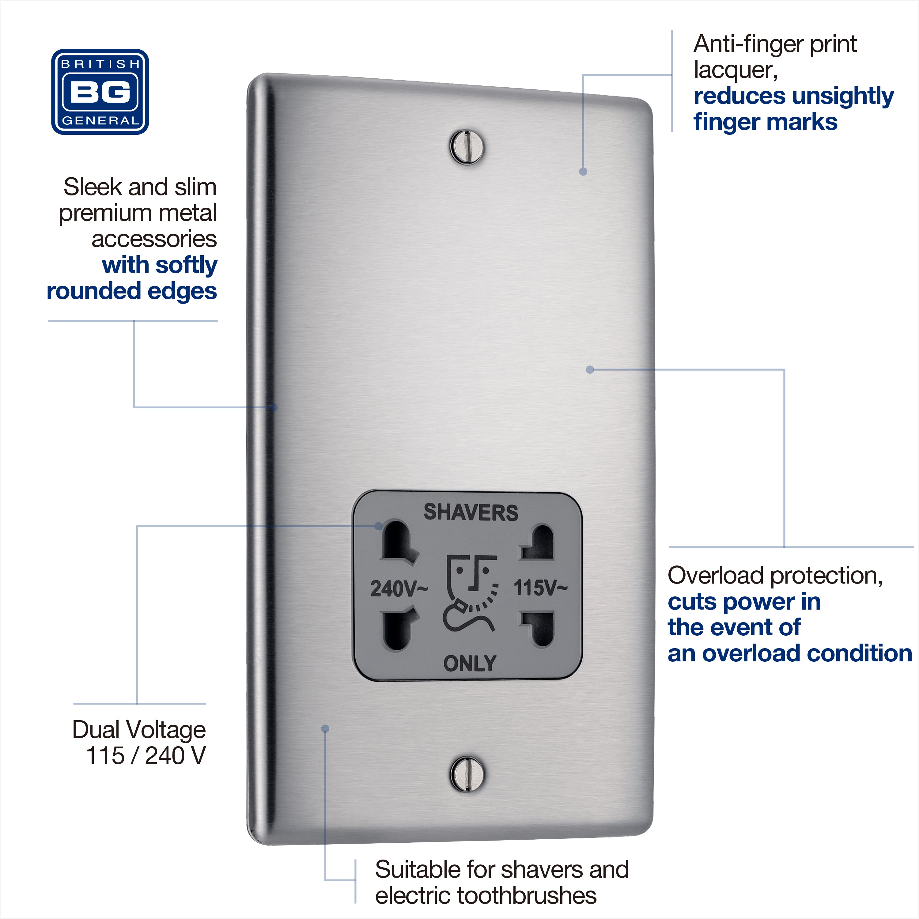 BG Nexus Metal Brushed Steel Shaver Socket NBS20G