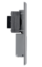The NBS20G is a shaver socket from the BG Nexus Metal range, finished in brushed steel with grey inserts. This range of switches and sockets has been designed with a modern, slim profile and has a lightly lacquered surface to reduce fingerprint marks. The BG Nexus Metal range of switches and sockets comes with colour coded screws and has a full grid system to match.